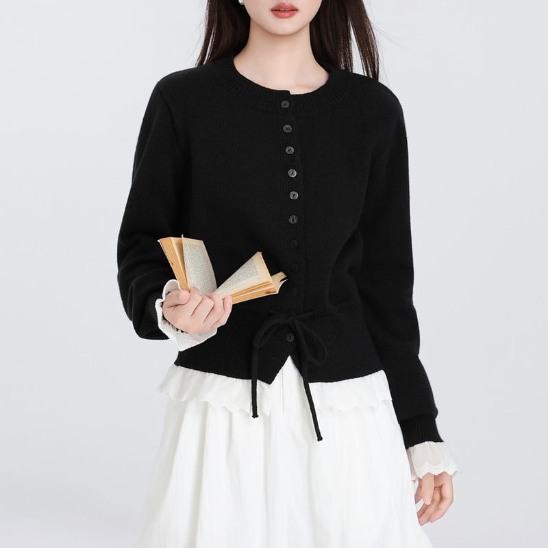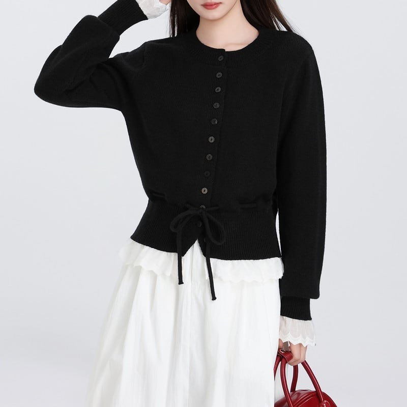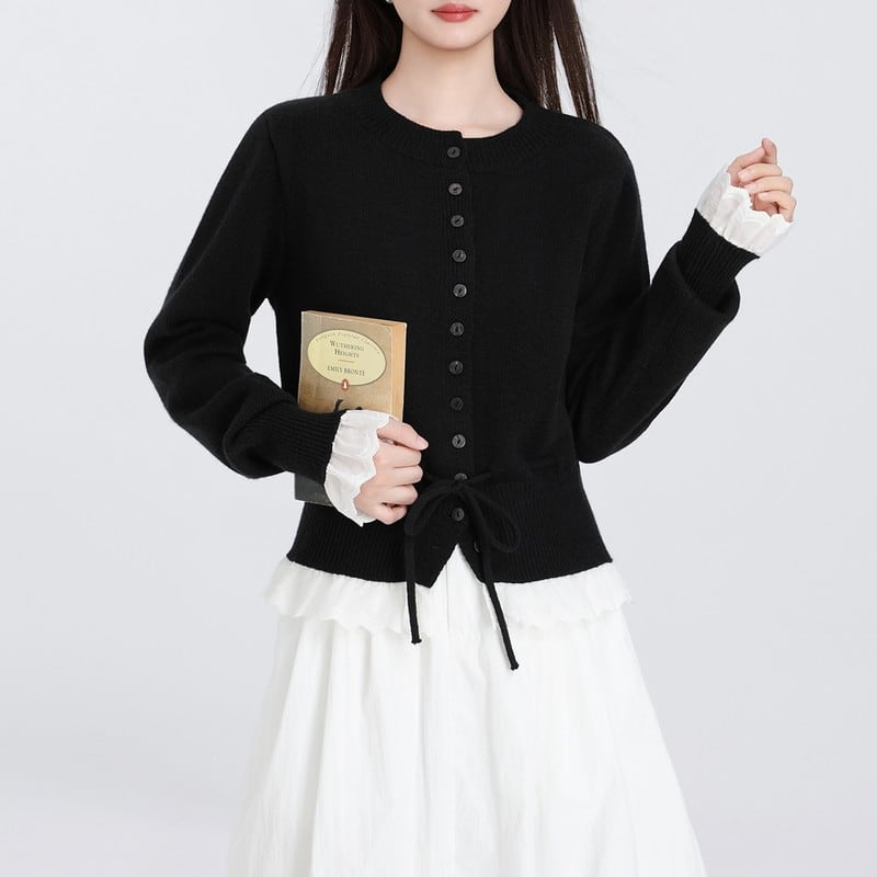 さりげない甘さを添えるフリルカフスのカーディガンです。