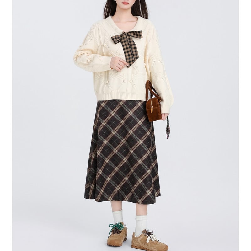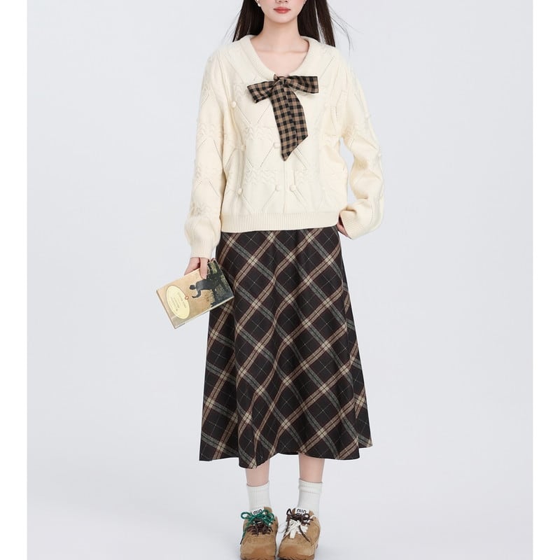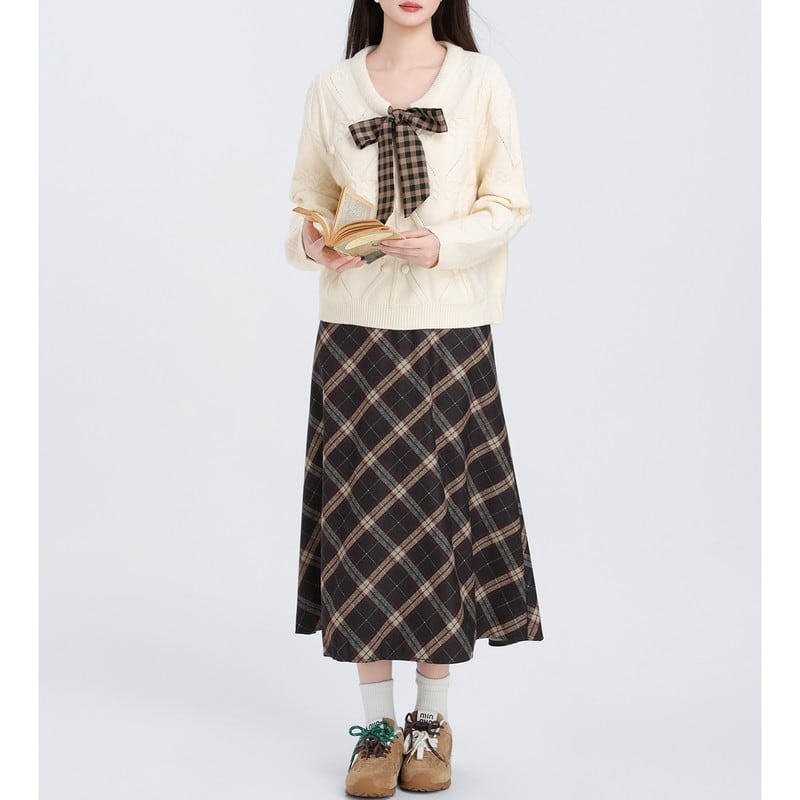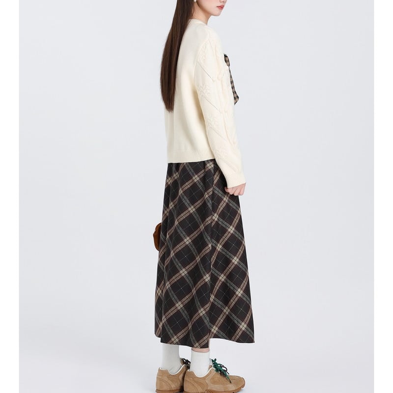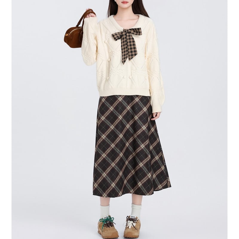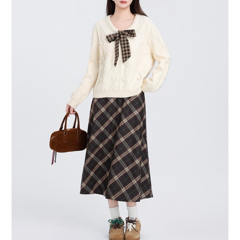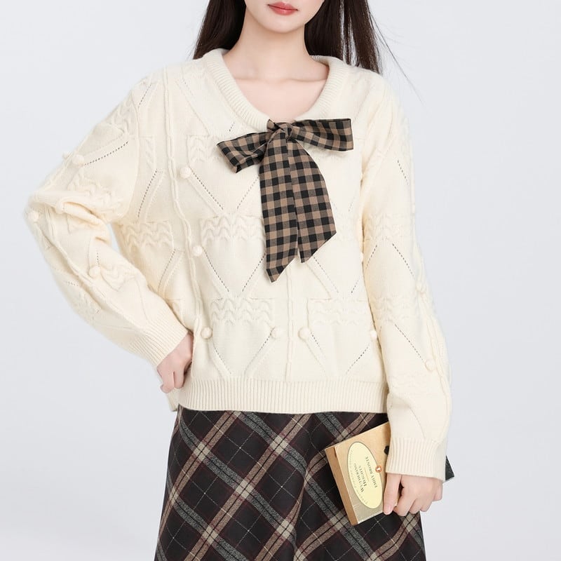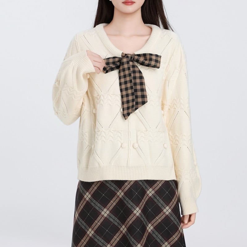上品なチェックリボンが映えるチェックリボンセーラーニットです。