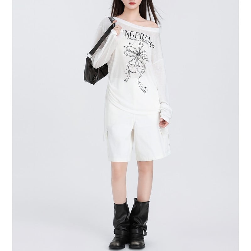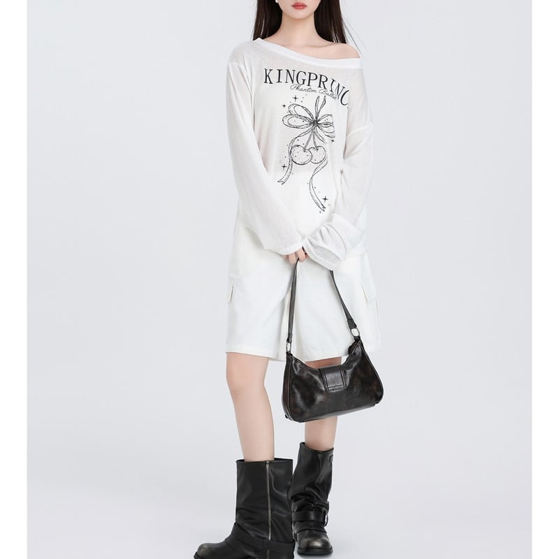 one-shoulder ribbon loose cutsew m1351