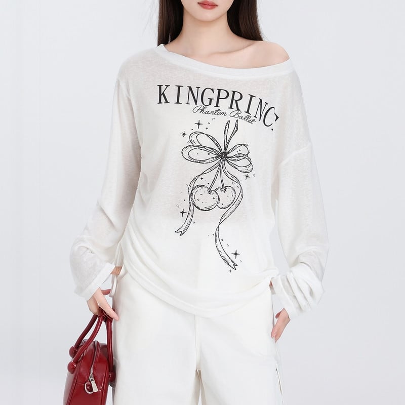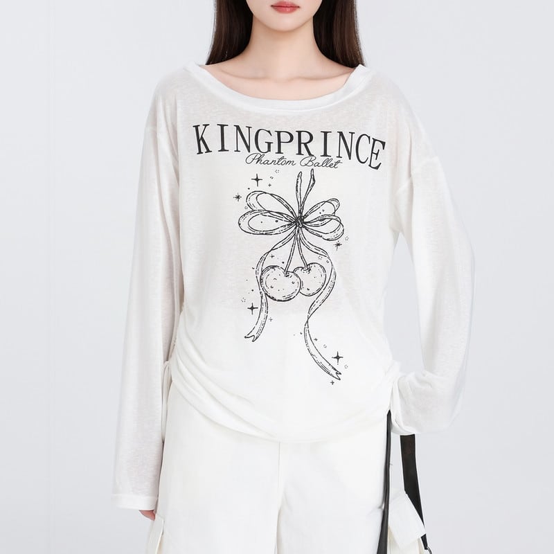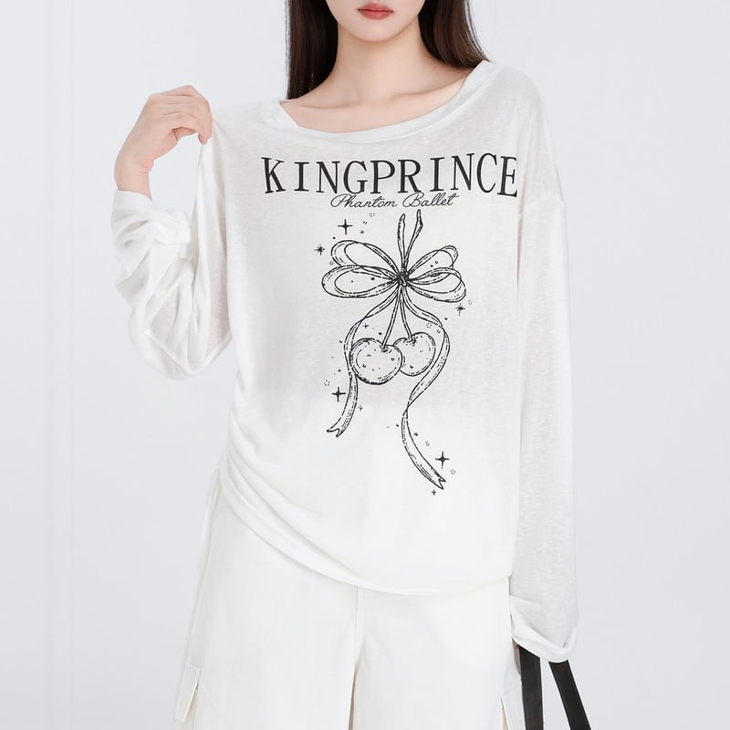さりげない甘さが映えるリボンチェリープリントロングスリーブです。