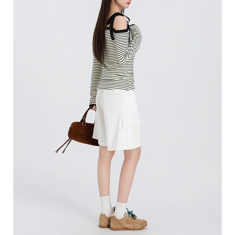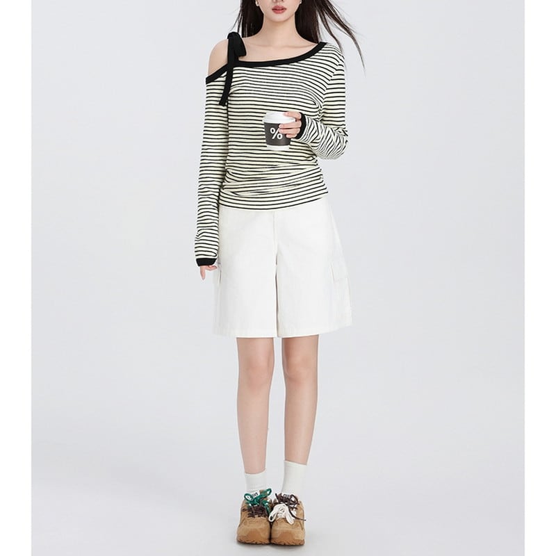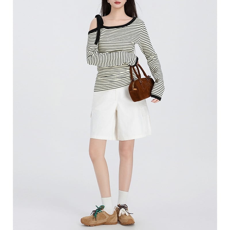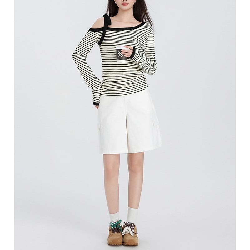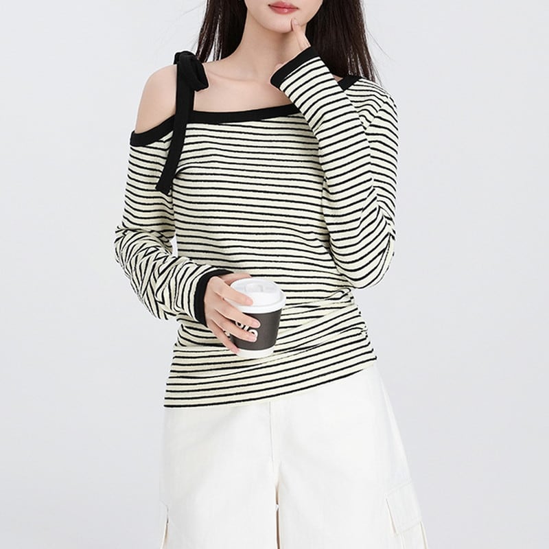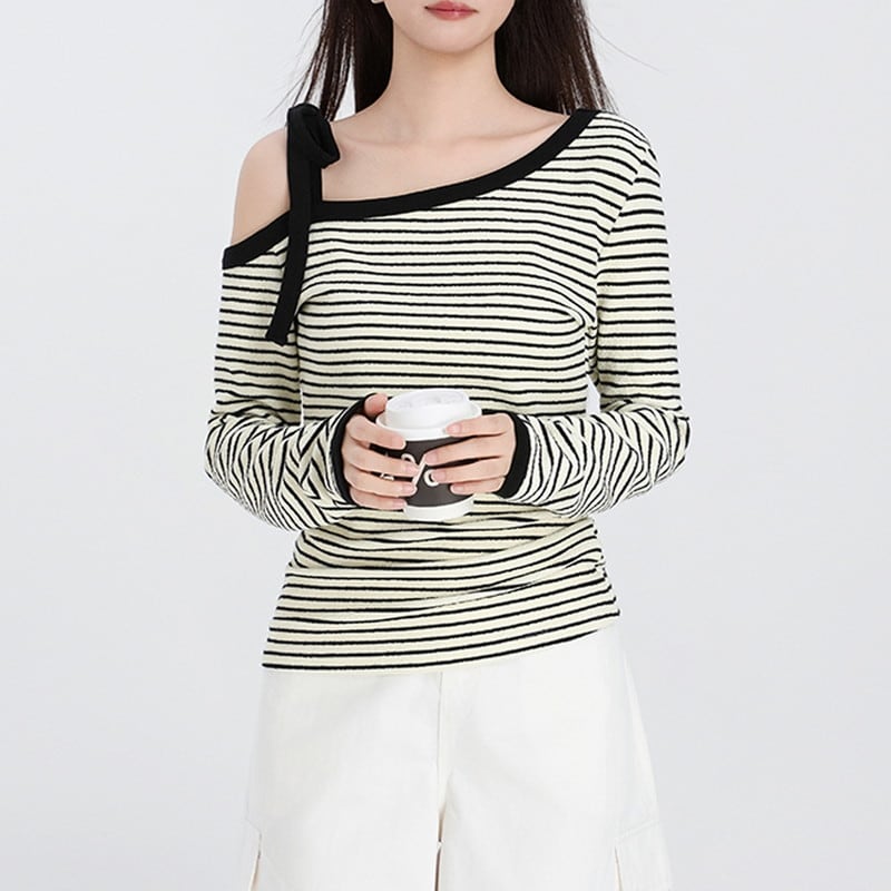 やわらかな抜け感が映えるオフショルダーボーダートップスです。