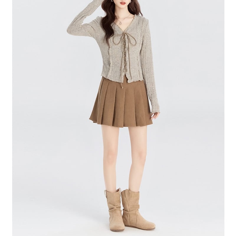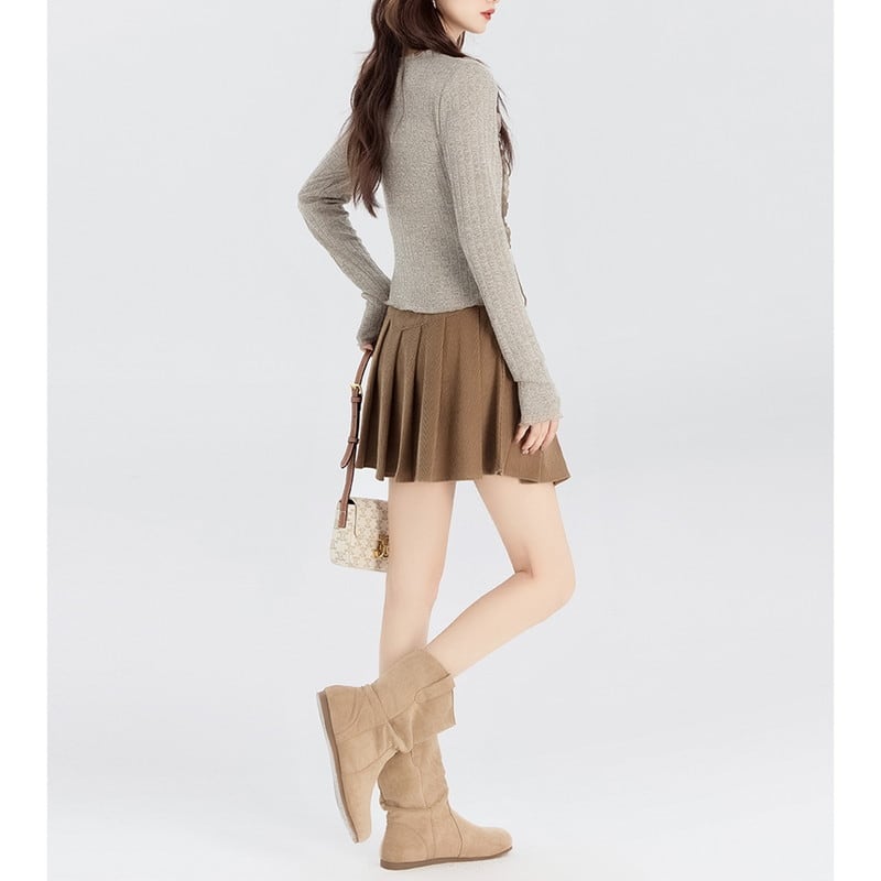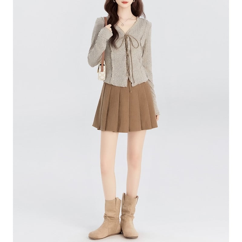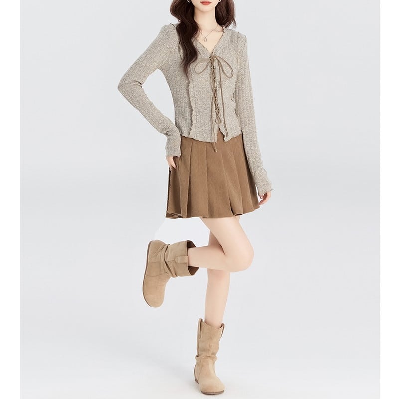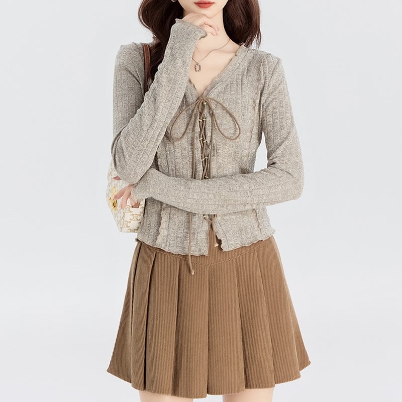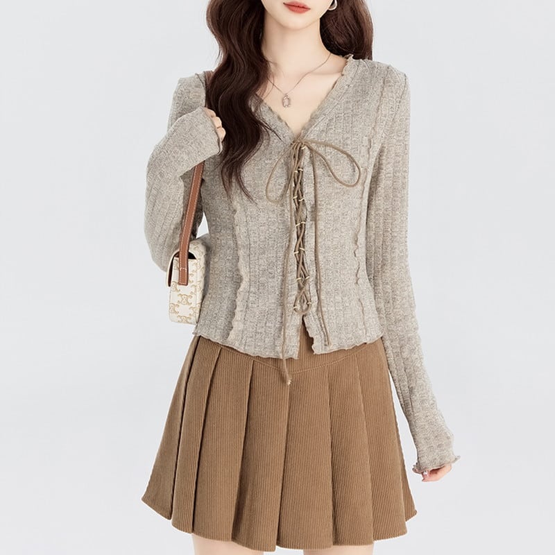 フロントの編み上げがコーデのポイントになり、自然な甘さをプラスしてくれます。