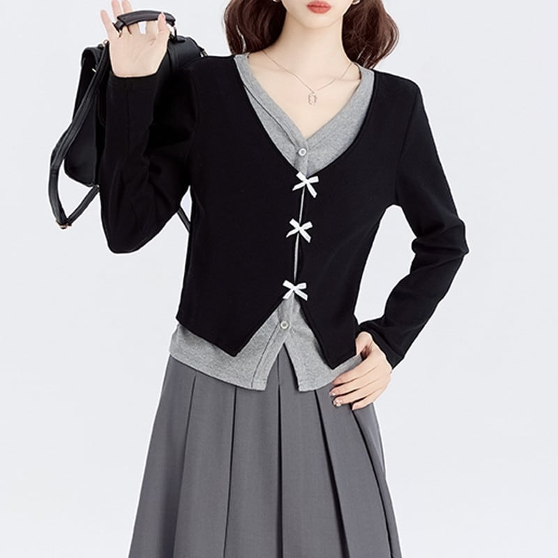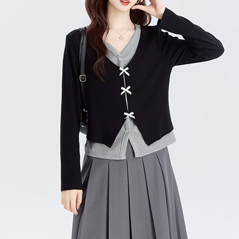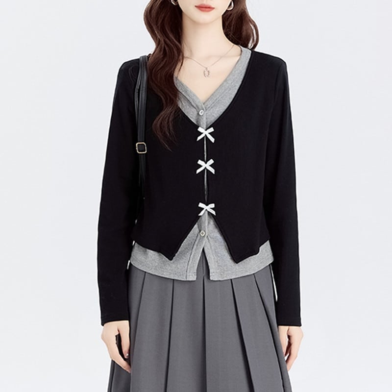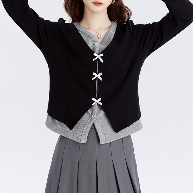 リボンが映える重ね着風のリボンドッキングトップスです。