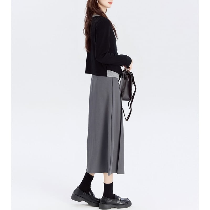カーデを重ねたような配色デザインが、一枚でこなれた雰囲気をつくってくれます。