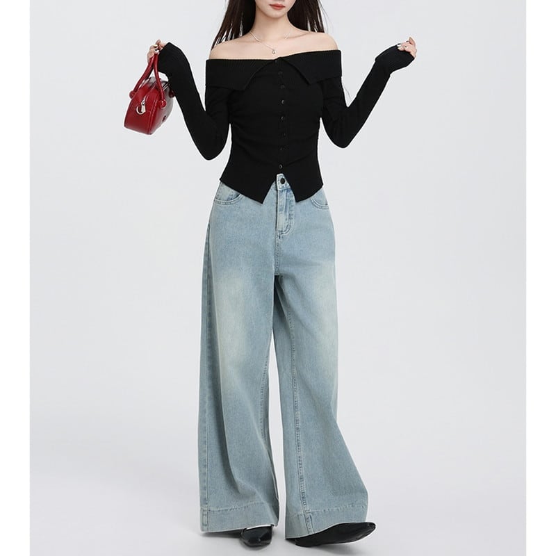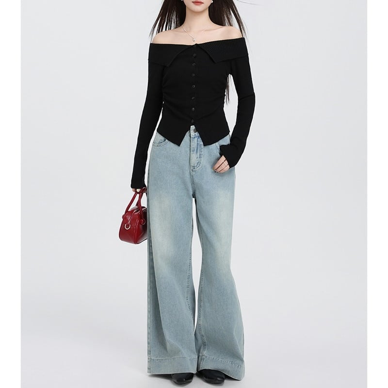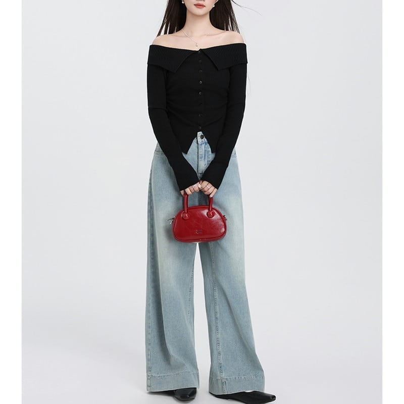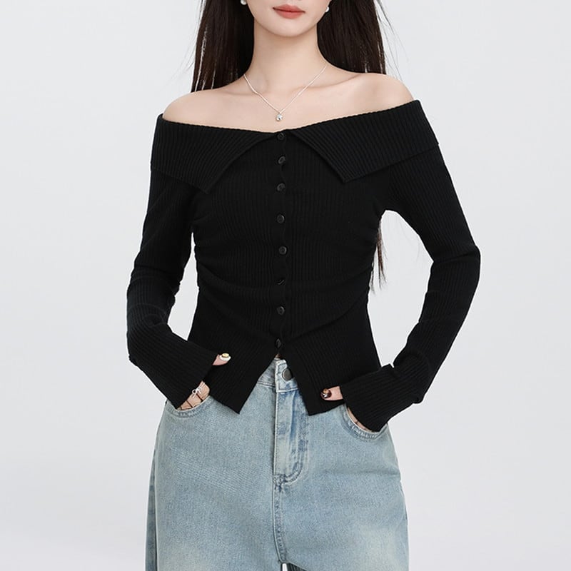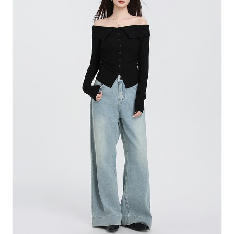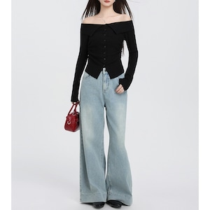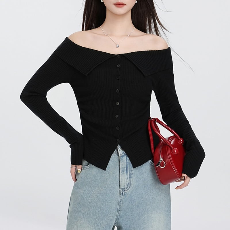 美しいデコルテを引き立てるオフショルダーデザインニットです。