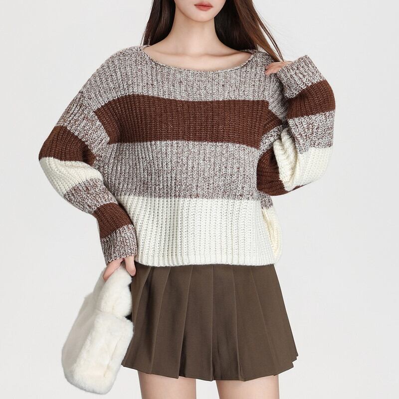やわらかな編み表情が印象的なミックスボーダールーズニットです。