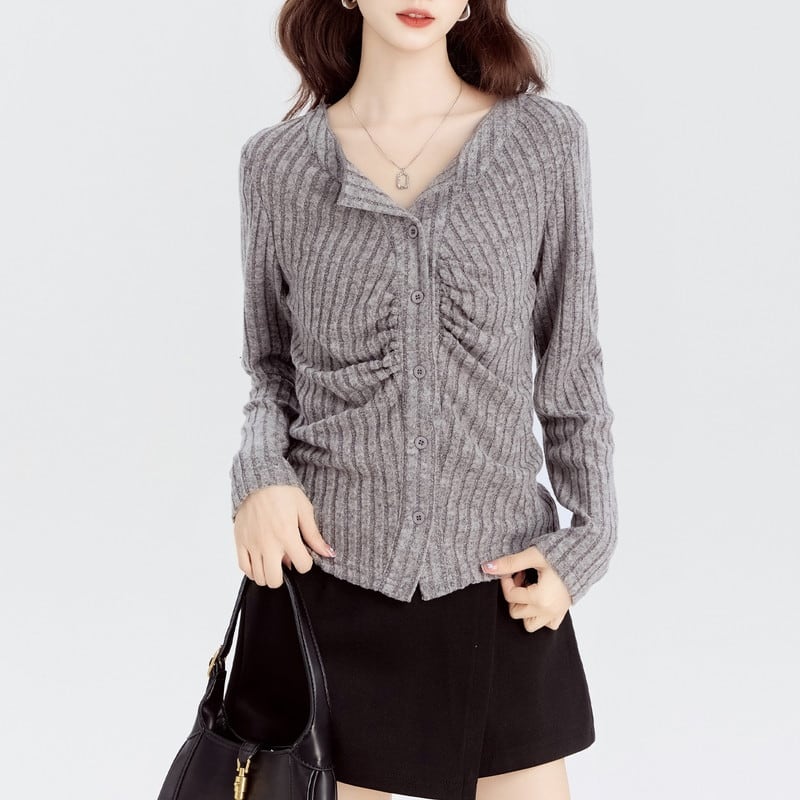 gather soft fit rib knit cardigan m1373