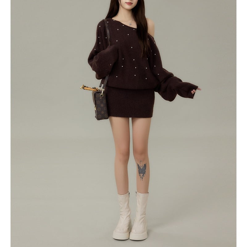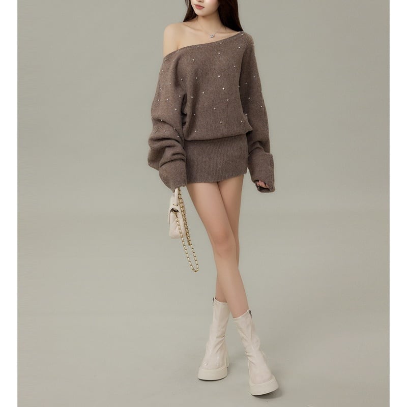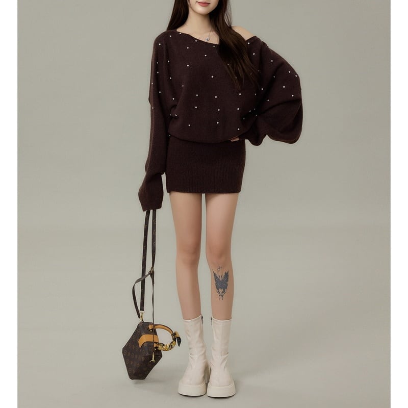 さりげないきらめきが映えるビジュードットワンショルダーニットワンピースです。 片側の肩をきれいに見せるラインと、全体に散りばめた小さな装飾が上品なアクセントです。 ゆったりとした落ち感と長めの丈感で、体のラインを拾いすぎないシルエット。 一枚で雰囲気が整い、デイリーからお出かけまで使いやすいワンピースです。 【サイズ】 XS:バスト104cm/着丈71cm S:バスト106cm/着丈72cm M:バスト108cm/着丈73cm L:バスト110cm/着丈74cm 【カラー】 ・グレー ・ブラウン ・ベージュ ・ダークブラウン 【モデル】 身長:160cm 体重:45kg 着用サイズ:S *Mille Msで人気のアイテムはこちら♪ https://www.millems-fashion.shop/categories/2981297 *新商品入荷中!/SALE情報をcheck https://www.millems-fashion.shop/ **ご購入前に必ずお読みください** https://www.millems-fashion.shop/blog/2020/10/28/193337 【お届けについて】 こちらの商品は海外店舗より直接発送となる為、 ご入金から10日〜3週間前後で発送致します。 ◆注意事項 ・タイミングによっては 商品在庫切れにより 注文キャンセルとさせていただく恐れもございますので、予めご了承くださいませ。 ・こちらは輸入品となります。日本製とは検品基準が異なる為、 新品未使用品でもごくわずかな汚れや ほつれがある場合もございます。 ・仕入れ工場を変えることがあるため、記載サイズと若干異なる場合がございます。 ・商品の色味は、お手持ちのスマートフォンの画面によって実物と若干異なる場合がございます。 ・イメージ違いやサイズ交換等、お客さまご都合による交換、返品は対応出来かねます。 【お支払方法】 ・クレジットカード決済 (VISA/Master/JCB/AMERICAN EXPRESS) ・キャリア決済 (docomo/au/SoftBank/Y!mobile/UQmobile) ・後払い決済 ーーーーーーーーーーーーーーーーーーーー *Mille Ms Instagram https://www.instagram.com/millems_official