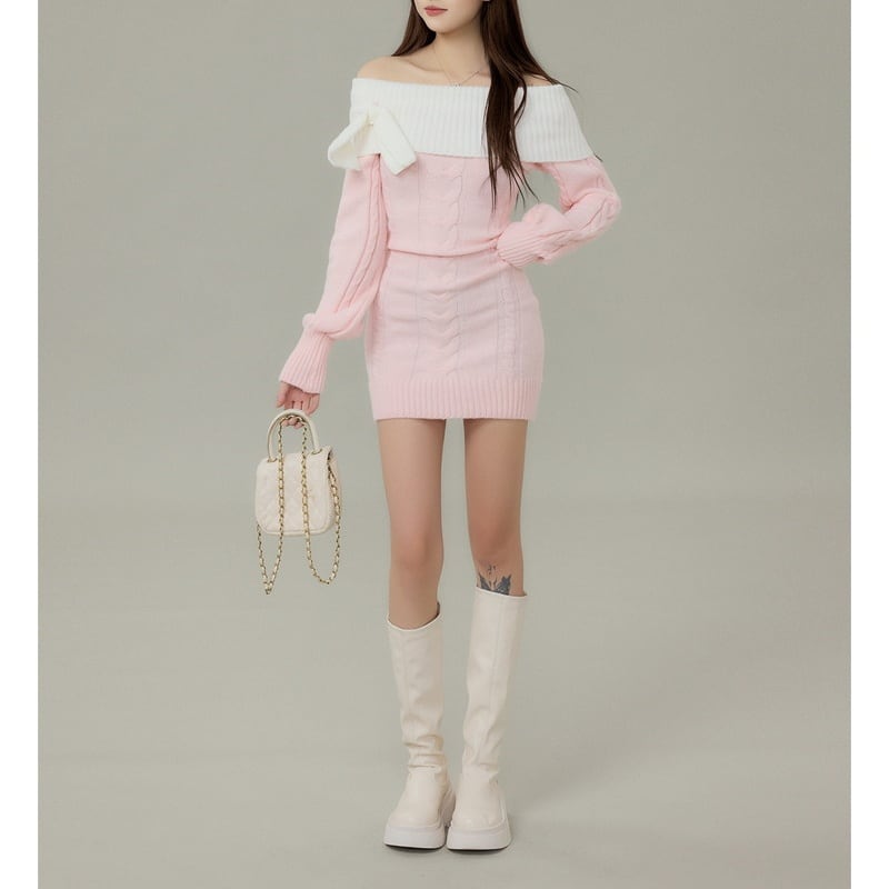 甘さをほどよく纏えるリボンオフショルダーニットワンピースです。 デコルテをきれいに見せるオフショルデザインに、さりげないリボンが柔らかなアクセントです。 縦の編みラインが自然にシルエットを整え、女性らしさを引き立てる印象。 一枚で華やかさが決まり、デートやお出かけにも取り入れやすい一着です。 【サイズ】 XS:バスト66cm/着丈73cm S:バスト68cm/着丈74cm M:バスト70cm/着丈75cm L:バスト72cm/着丈76cm 【カラー】 ・ピンク ・ブラック ・グレー 【モデル】 身長:160cm 体重:45kg 着用サイズ:S *Mille Msで人気のアイテムはこちら♪ https://www.millems-fashion.shop/categories/2981297 *新商品入荷中!/SALE情報をcheck https://www.millems-fashion.shop/ **ご購入前に必ずお読みください** https://www.millems-fashion.shop/blog/2020/10/28/193337 【お届けについて】 こちらの商品は海外店舗より直接発送となる為、 ご入金から10日〜3週間前後で発送致します。 ◆注意事項 ・タイミングによっては 商品在庫切れにより 注文キャンセルとさせていただく恐れもございますので、予めご了承くださいませ。 ・こちらは輸入品となります。日本製とは検品基準が異なる為、 新品未使用品でもごくわずかな汚れや ほつれがある場合もございます。 ・仕入れ工場を変えることがあるため、記載サイズと若干異なる場合がございます。 ・商品の色味は、お手持ちのスマートフォンの画面によって実物と若干異なる場合がございます。 ・イメージ違いやサイズ交換等、お客さまご都合による交換、返品は対応出来かねます。 【お支払方法】 ・クレジットカード決済 (VISA/Master/JCB/AMERICAN EXPRESS) ・キャリア決済 (docomo/au/SoftBank/Y!mobile/UQmobile) ・後払い決済 ーーーーーーーーーーーーーーーーーーーー *Mille Ms Instagram https://www.instagram.com/millems_official