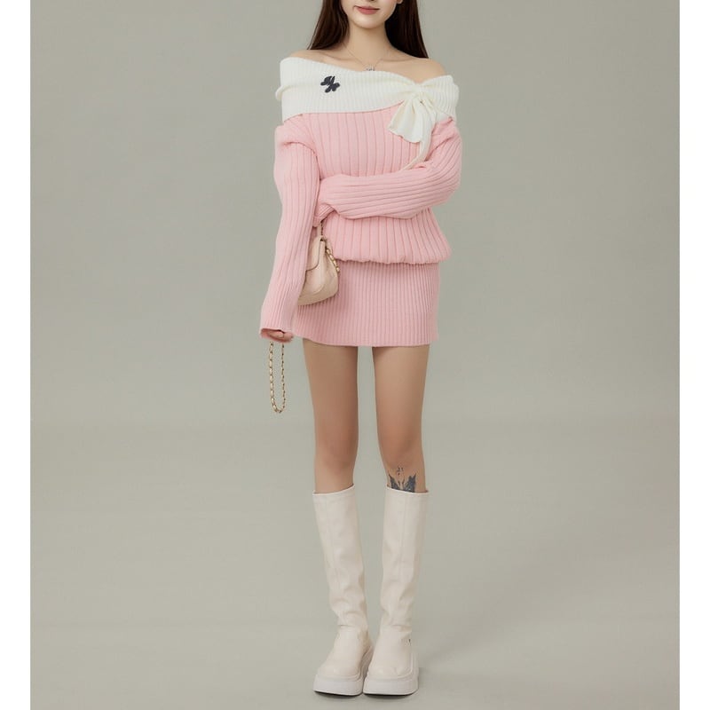 やわらかな甘さが引き立つリボンオフショルダーニットワンピースです。 デコルテをきれいに見せる折り返しデザインと、リボンモチーフが印象をやさしく整えます。 縦の編みラインとほどよいゆとり感で、体のラインを拾いすぎないシルエット。 一枚で雰囲気が完成し、デイリーにもお出かけにも使いやすいワンピースです。 【サイズ】 XS:バスト88cm/着丈81cm S:バスト90cm/着丈82cm M:バスト92cm/着丈83cm L:バスト94cm/着丈84cm 【カラー】 ・ピンク ・グレー 【モデル】 身長:160cm 体重:45kg 着用サイズ:S *Mille Msで人気のアイテムはこちら♪ https://www.millems-fashion.shop/categories/2981297 *新商品入荷中!/SALE情報をcheck https://www.millems-fashion.shop/ **ご購入前に必ずお読みください** https://www.millems-fashion.shop/blog/2020/10/28/193337 【お届けについて】 こちらの商品は海外店舗より直接発送となる為、 ご入金から10日〜3週間前後で発送致します。 ◆注意事項 ・タイミングによっては 商品在庫切れにより 注文キャンセルとさせていただく恐れもございますので、予めご了承くださいませ。 ・こちらは輸入品となります。日本製とは検品基準が異なる為、 新品未使用品でもごくわずかな汚れや ほつれがある場合もございます。 ・仕入れ工場を変えることがあるため、記載サイズと若干異なる場合がございます。 ・商品の色味は、お手持ちのスマートフォンの画面によって実物と若干異なる場合がございます。 ・イメージ違いやサイズ交換等、お客さまご都合による交換、返品は対応出来かねます。 【お支払方法】 ・クレジットカード決済 (VISA/Master/JCB/AMERICAN EXPRESS) ・キャリア決済 (docomo/au/SoftBank/Y!mobile/UQmobile) ・後払い決済 ーーーーーーーーーーーーーーーーーーーー *Mille Ms Instagram https://www.instagram.com/millems_official