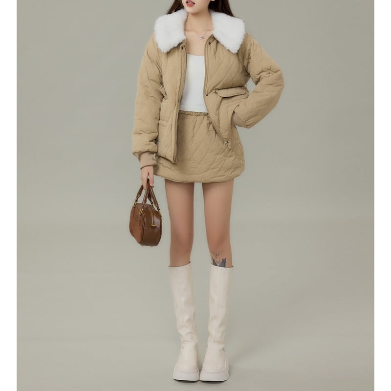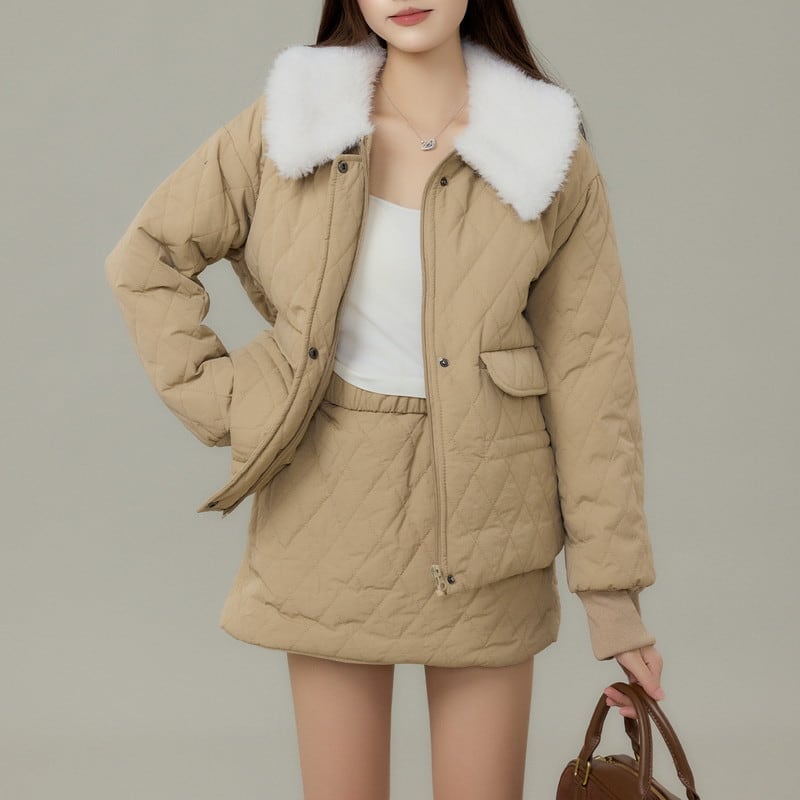 季節感のある着こなしが完成するキルティングジャケット×スカートセットアップです。 程よいボリューム感のアウターと、すっきりとしたスカートの組み合わせでバランス良くまとまります。 それぞれ単品使いもしやすく、着回しの幅が広がるデザイン。 セットでも別々でも活躍し、デイリーからお出かけまで頼れるアイテムです。 【サイズ】 ・ジャケット XS:バスト100cm/着丈52cm S:バスト102cm/着丈53cm M:バスト104cm/着丈54cm L:バスト106cm/着丈55cm ・スカート XS:ウエスト62cm/着丈35cm S:ウエスト64cm/着丈36cm M:ウエスト66cm/着丈37cm L:ウエスト68cm/着丈38cm 【カラー】 ・ベージュ ・ブラック 【モデル】 身長:160cm 体重:45kg 着用サイズ:S *Mille Msで人気のアイテムはこちら♪ https://www.millems-fashion.shop/categories/2981297 *新商品入荷中!/SALE情報をcheck https://www.millems-fashion.shop/ **ご購入前に必ずお読みください** https://www.millems-fashion.shop/blog/2020/10/28/193337 【お届けについて】 こちらの商品は海外店舗より直接発送となる為、 ご入金から10日〜3週間前後で発送致します。 ◆注意事項 ・タイミングによっては 商品在庫切れにより 注文キャンセルとさせていただく恐れもございますので、予めご了承くださいませ。 ・こちらは輸入品となります。日本製とは検品基準が異なる為、 新品未使用品でもごくわずかな汚れや ほつれがある場合もございます。 ・仕入れ工場を変えることがあるため、記載サイズと若干異なる場合がございます。 ・商品の色味は、お手持ちのスマートフォンの画面によって実物と若干異なる場合がございます。 ・イメージ違いやサイズ交換等、お客さまご都合による交換、返品は対応出来かねます。 【お支払方法】 ・クレジットカード決済 (VISA/Master/JCB/AMERICAN EXPRESS) ・キャリア決済 (docomo/au/SoftBank/Y!mobile/UQmobile) ・後払い決済 ーーーーーーーーーーーーーーーーーーーー *Mille Ms Instagram https://www.instagram.com/millems_official