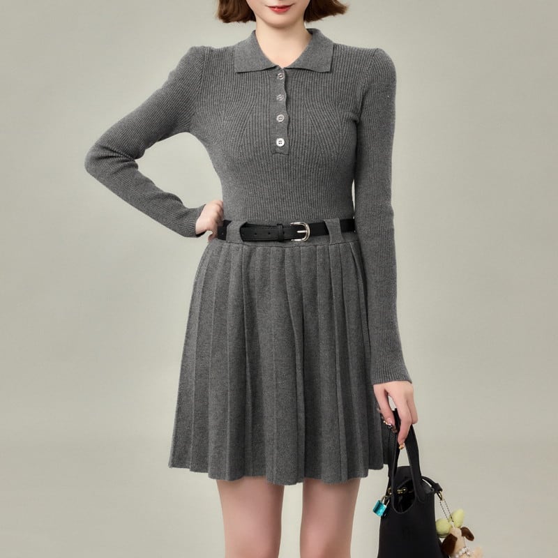 きちんと感とやわらかさを併せ持つ襟付きプリーツニットワンピースです。 上身頃はすっきりとしたシルエットで、襟元が全体の印象を上品に整えます。 動くたびに揺れるプリーツスカートが、軽やかで女性らしい雰囲気。 一枚でコーデが完成し、デイリーからきれいめシーンまで活躍する一着です。 【サイズ】 XS:バスト66cm/着丈78cm S:バスト68cm/着丈79cm M:バスト70cm/着丈80cm L:バスト72cm/着丈81cm 【カラー】 ・アプリコット ・ブラウン ・グレー 【モデル】 身長:160cm 体重:45kg 着用サイズ:S *Mille Msで人気のアイテムはこちら♪ https://www.millems-fashion.shop/categories/2981297 *新商品入荷中!/SALE情報をcheck https://www.millems-fashion.shop/ **ご購入前に必ずお読みください** https://www.millems-fashion.shop/blog/2020/10/28/193337 【お届けについて】 こちらの商品は海外店舗より直接発送となる為、 ご入金から10日〜3週間前後で発送致します。 ◆注意事項 ・タイミングによっては 商品在庫切れにより 注文キャンセルとさせていただく恐れもございますので、予めご了承くださいませ。 ・こちらは輸入品となります。日本製とは検品基準が異なる為、 新品未使用品でもごくわずかな汚れや ほつれがある場合もございます。 ・仕入れ工場を変えることがあるため、記載サイズと若干異なる場合がございます。 ・商品の色味は、お手持ちのスマートフォンの画面によって実物と若干異なる場合がございます。 ・イメージ違いやサイズ交換等、お客さまご都合による交換、返品は対応出来かねます。 【お支払方法】 ・クレジットカード決済 (VISA/Master/JCB/AMERICAN EXPRESS) ・キャリア決済 (docomo/au/SoftBank/Y!mobile/UQmobile) ・後払い決済 ーーーーーーーーーーーーーーーーーーーー *Mille Ms Instagram https://www.instagram.com/millems_official