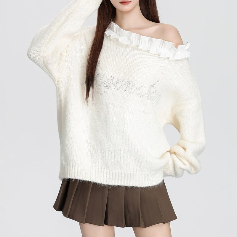 frill off-shoulder letter knit m1511