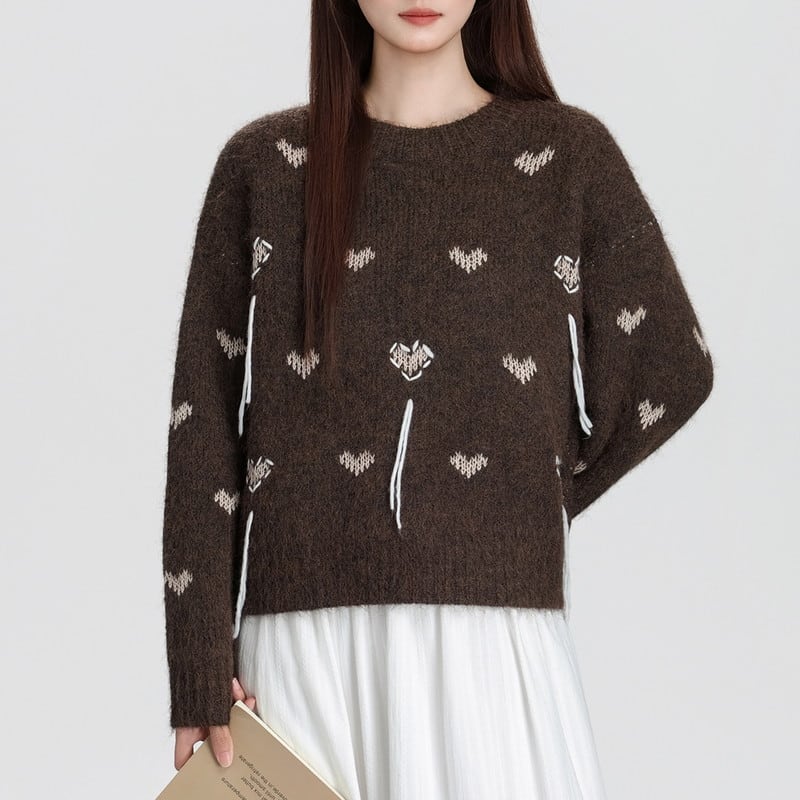 heart embroidered round-neck knit m1513
