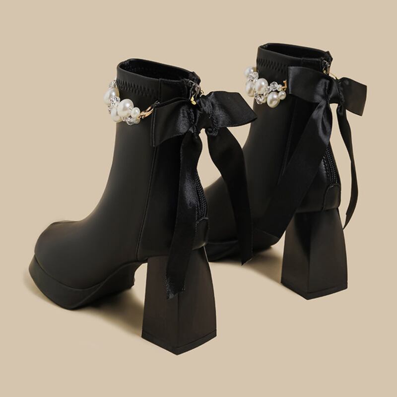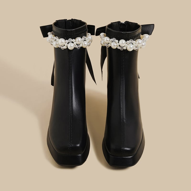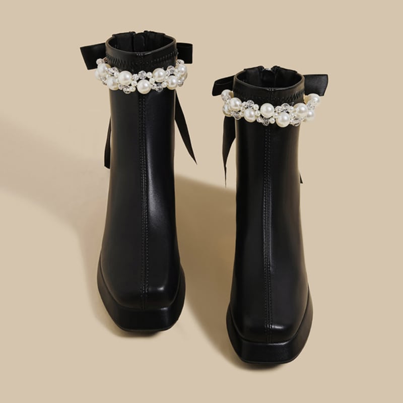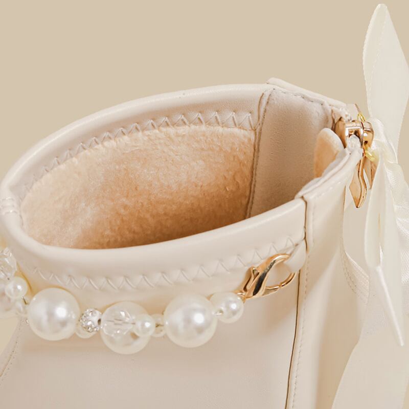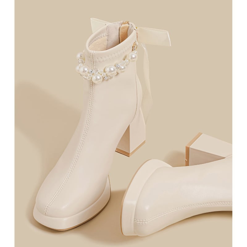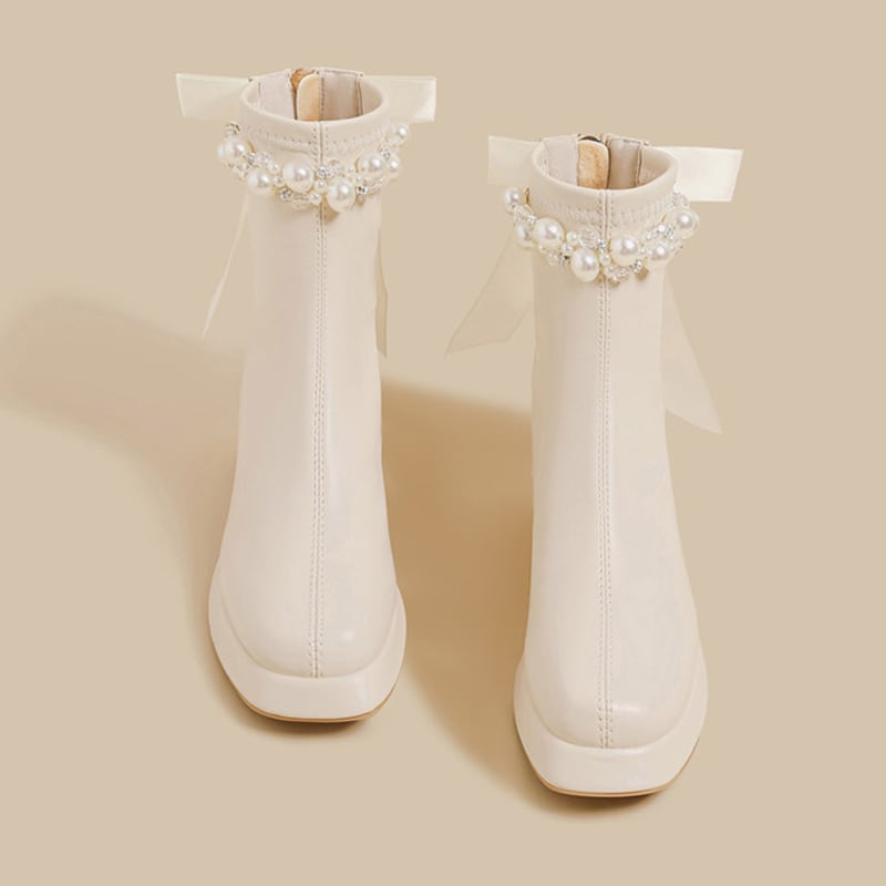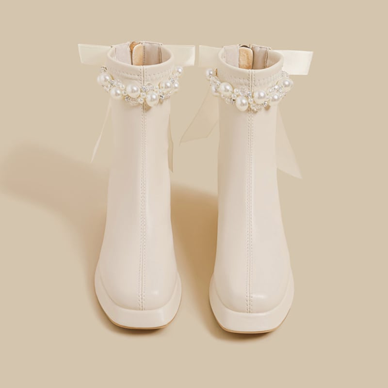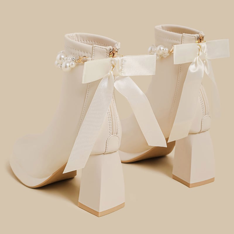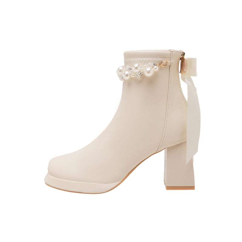 足元を華やかに彩るショートブーツ。 上品なパール装飾と、可愛らしいリボンがポイント。 スカートやワンピースに合わせれば、ガーリーな雰囲気に、パンツスタイルに合わせれば、程よい甘さをプラスできます。 【サイズ】 35(22-22.5cm) 36(22.5-23cm) 37(23-23.5cm) 38(23.5-24cm) 39(24-24.5cm) ヒール/7cm 【カラー】 ・ホワイト ・ブラック *Mille Msで人気のアイテムはこちら♪ https://www.millems-fashion.shop/categories/2981297 *新商品入荷中!/SALE情報をcheck https://www.millems-fashion.shop/ **ご購入前に必ずお読みください** https://www.millems-fashion.shop/blog/2020/10/28/193337 【お届けについて】 こちらの商品は海外店舗より直接発送となる為、 ご入金から10日〜3週間前後で発送致します。 ◆注意事項 ・タイミングによっては 商品在庫切れにより 注文キャンセルとさせていただく恐れもございますので、予めご了承くださいませ。 ・こちらは輸入品となります。日本製とは検品基準が異なる為、 新品未使用品でもごくわずかな汚れや ほつれがある場合もございます。 ・仕入れ工場を変えることがあるため、記載サイズと若干異なる場合がございます。 ・商品の色味は、お手持ちのスマートフォンの画面によって実物と若干異なる場合がございます。 ・イメージ違いやサイズ交換等、お客さまご都合による交換、返品は対応出来かねます。 【お支払方法】 ・クレジットカード決済 (VISA/Master/JCB/AMERICAN EXPRESS) ・キャリア決済 (docomo/au/SoftBank/Y!mobile/UQmobile) ・後払い決済 ーーーーーーーーーーーーーーーーーーーー *Mille Ms Instagram https://www.instagram.com/millems_official