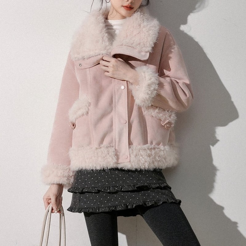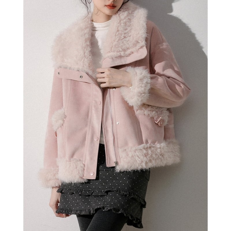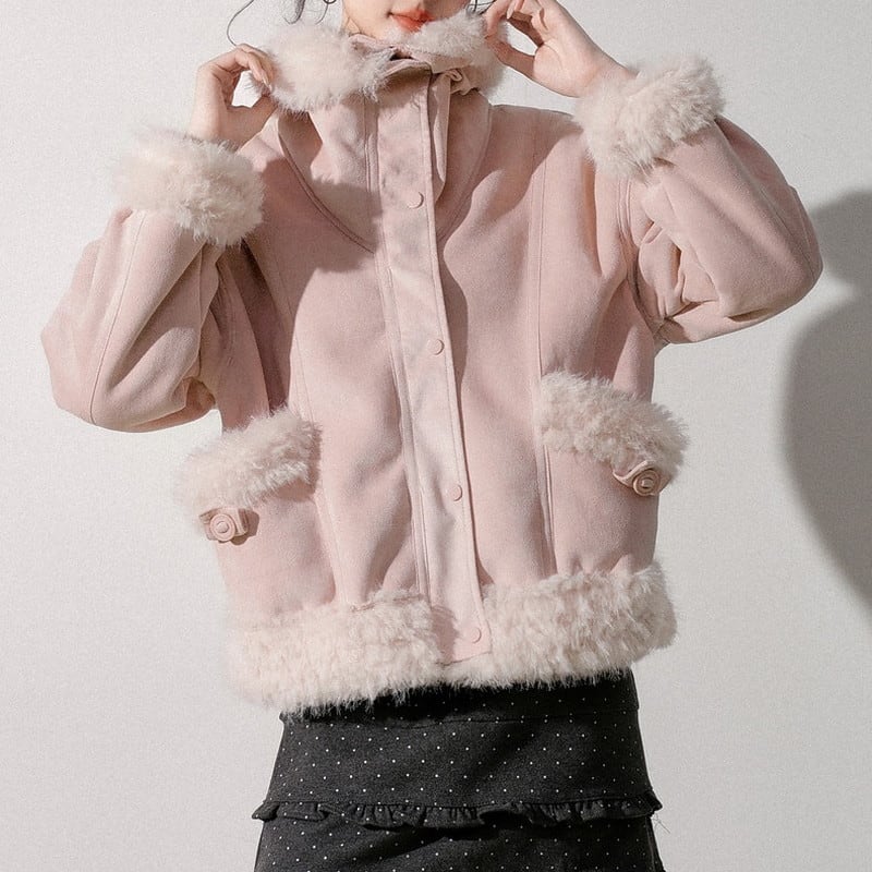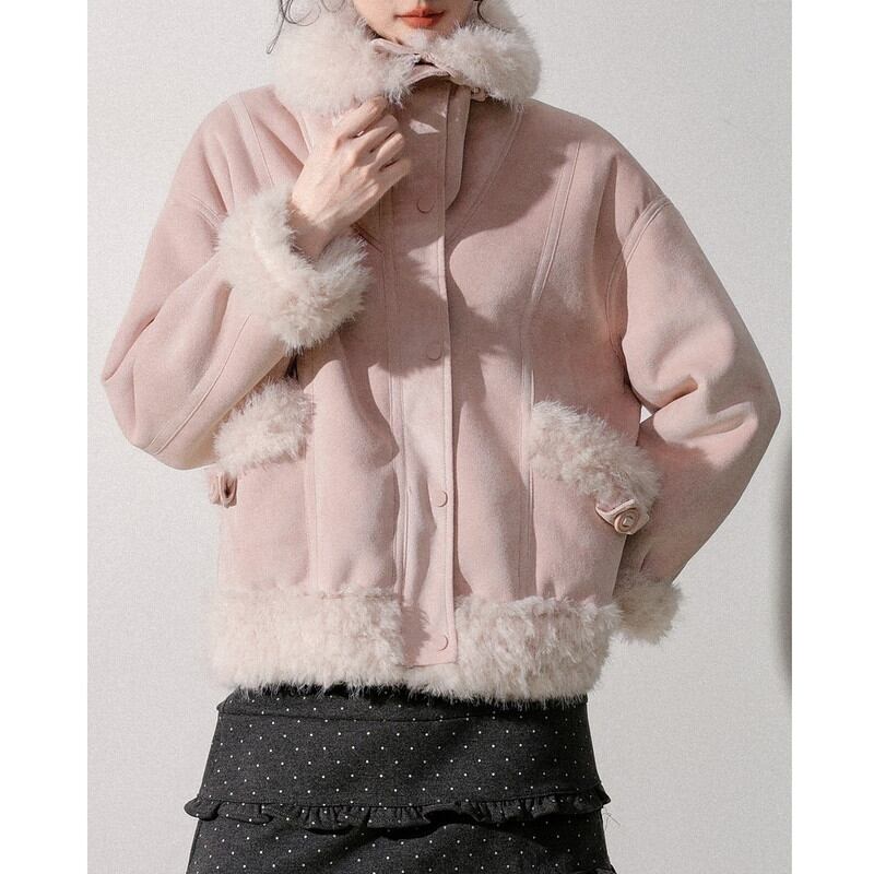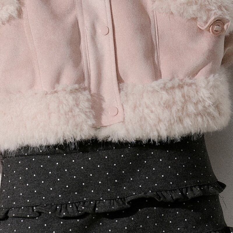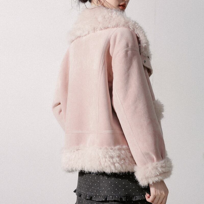 ふんわり襟が印象的な襟ボア付きショート丈のスウェードジャケットです。