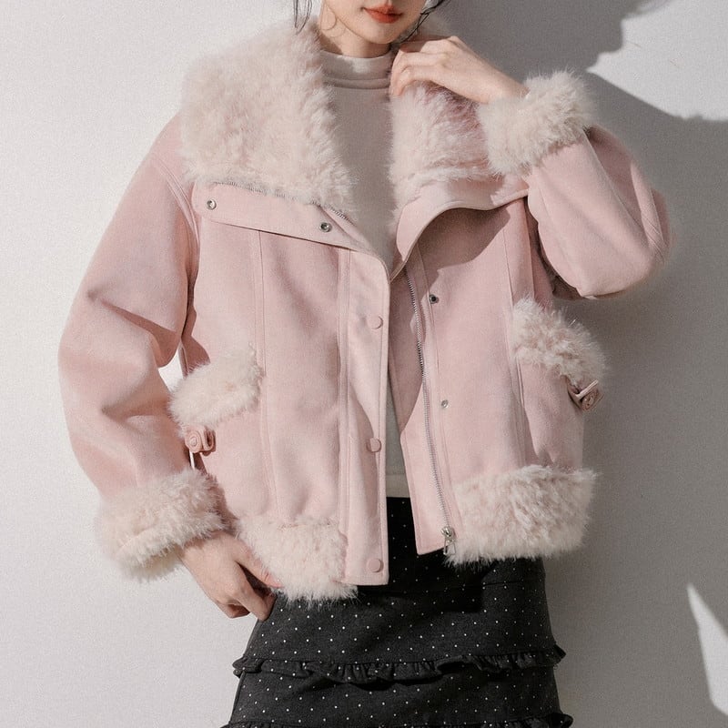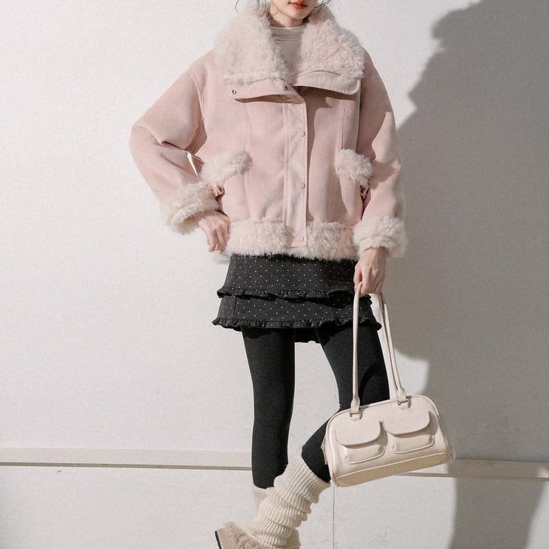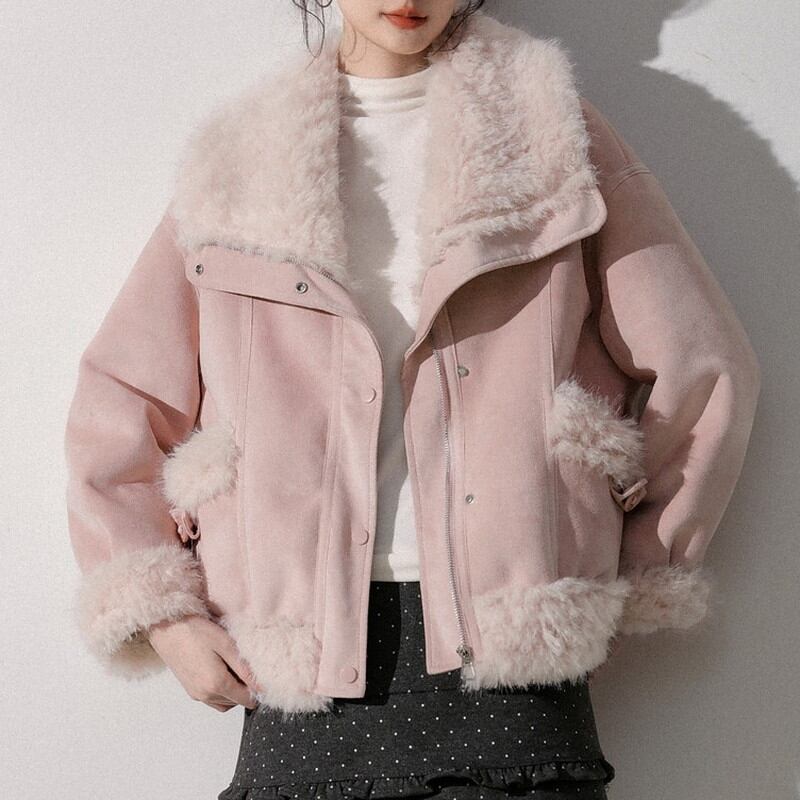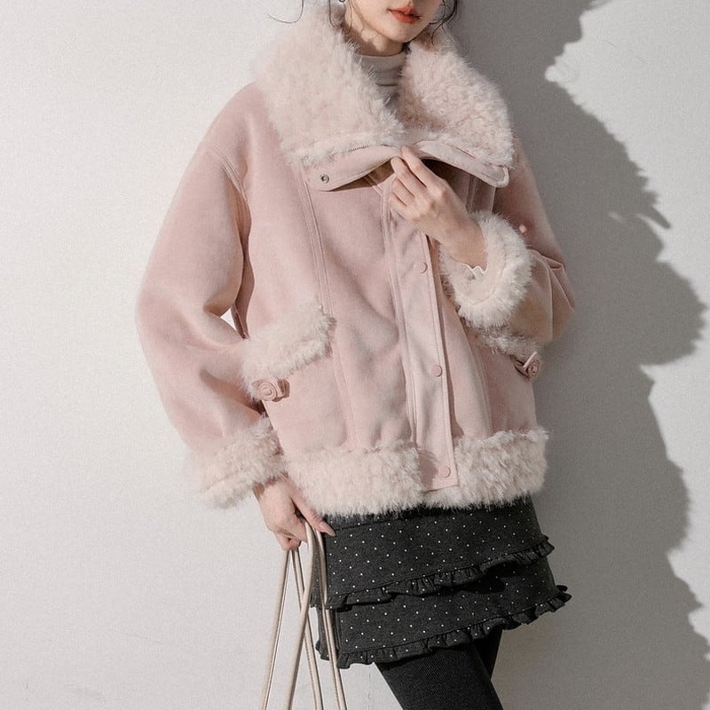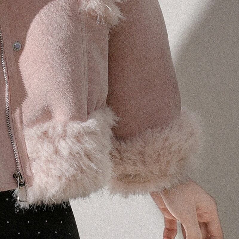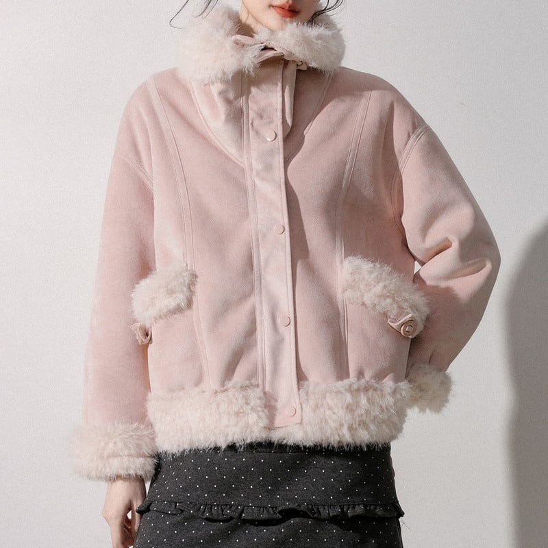 ふんわり襟が印象的な襟ボア付きショート丈のスウェードジャケットです。
