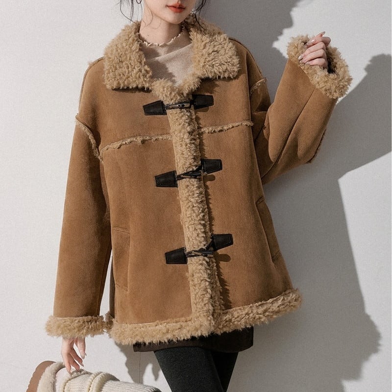 toggle-button suede boa short jacket m1523