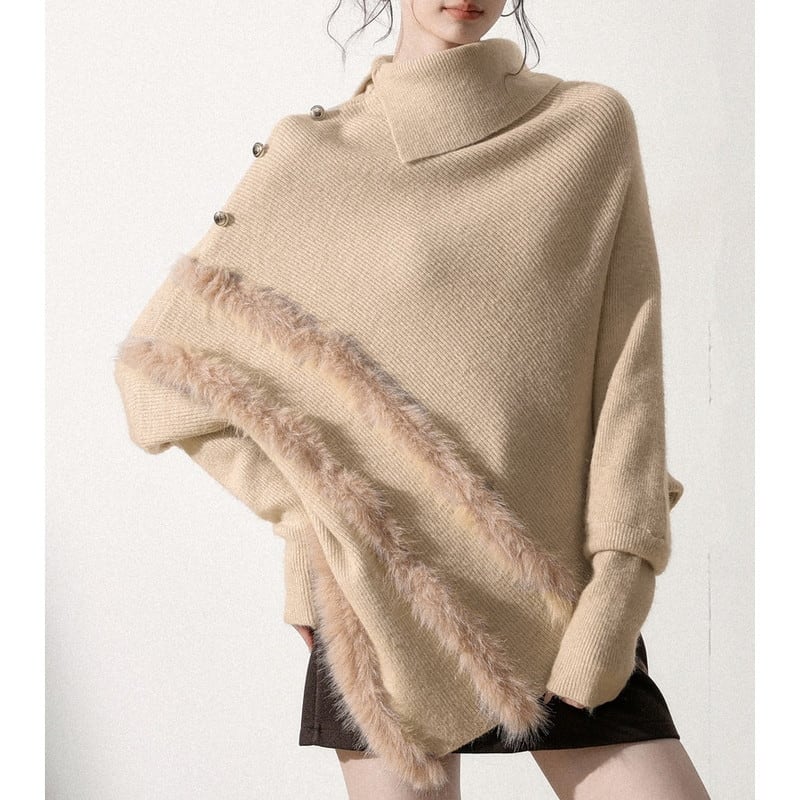 斜めに入ったファー切り替えと柔らかな表情が、シンプルながらも存在感のある一枚に。