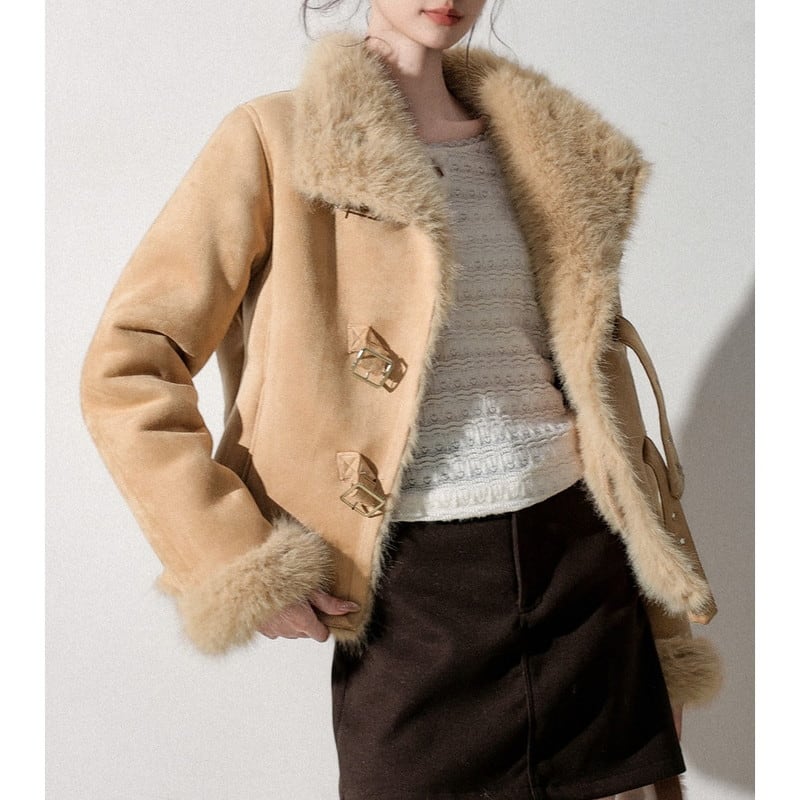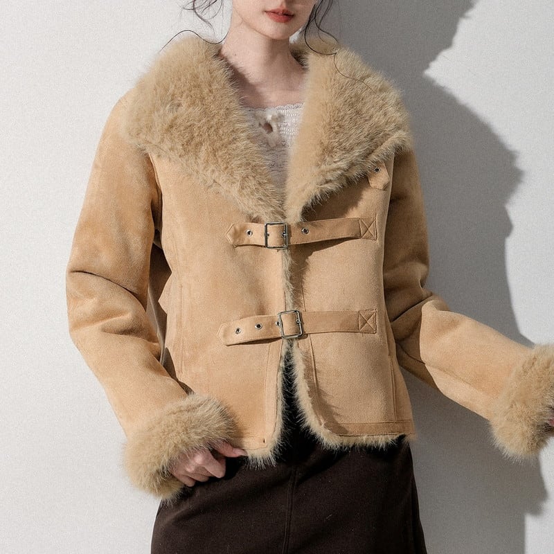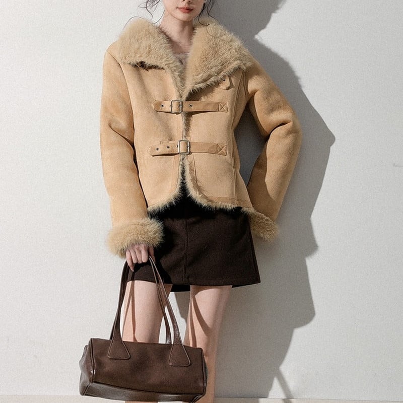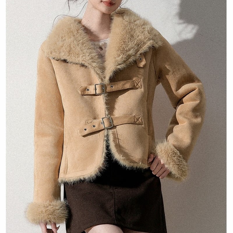 存在感のあるボア襟が目を引くショートアウターです。 フロントのバックルデザインが程よいアクセントになり、甘さを抑えた大人バランス。 コンパクトな丈感で重たく見えにくく、自然に体型カバーも意識できるシルエット。 スカートにもパンツにも合わせやすく、季節感のある着こなしが楽しめます。 【サイズ】 S:肩幅38cm/スト92cm/袖丈56cm/着丈58.8cm M:肩幅39cm/バスト96cm/袖丈57cm/着丈59.5cm L:肩幅40cm/バスト100cm/袖丈58cm/着丈62cm 【カラー】 ・ベージュ ・アプリコット ・ダークベージュ 【モデル】 身長:163cm 体重:48.5kg B/W:97/72 着用サイズ:M *Mille Msで人気のアイテムはこちら♪ https://www.millems-fashion.shop/categories/2981297 *新商品入荷中!/SALE情報をcheck https://www.millems-fashion.shop/ **ご購入前に必ずお読みください** https://www.millems-fashion.shop/blog/2020/10/28/193337 【お届けについて】 こちらの商品は海外店舗より直接発送となる為、 ご入金から10日〜3週間前後で発送致します。 ◆注意事項 ・タイミングによっては 商品在庫切れにより 注文キャンセルとさせていただく恐れもございますので、予めご了承くださいませ。 ・こちらは輸入品となります。日本製とは検品基準が異なる為、 新品未使用品でもごくわずかな汚れや ほつれがある場合もございます。 ・仕入れ工場を変えることがあるため、記載サイズと若干異なる場合がございます。 ・商品の色味は、お手持ちのスマートフォンの画面によって実物と若干異なる場合がございます。 ・イメージ違いやサイズ交換等、お客さまご都合による交換、返品は対応出来かねます。 【お支払方法】 ・クレジットカード決済 (VISA/Master/JCB/AMERICAN EXPRESS) ・キャリア決済 (docomo/au/SoftBank/Y!mobile/UQmobile) ・後払い決済 ーーーーーーーーーーーーーーーーーーーー *Mille Ms Instagram https://www.instagram.com/millems_official