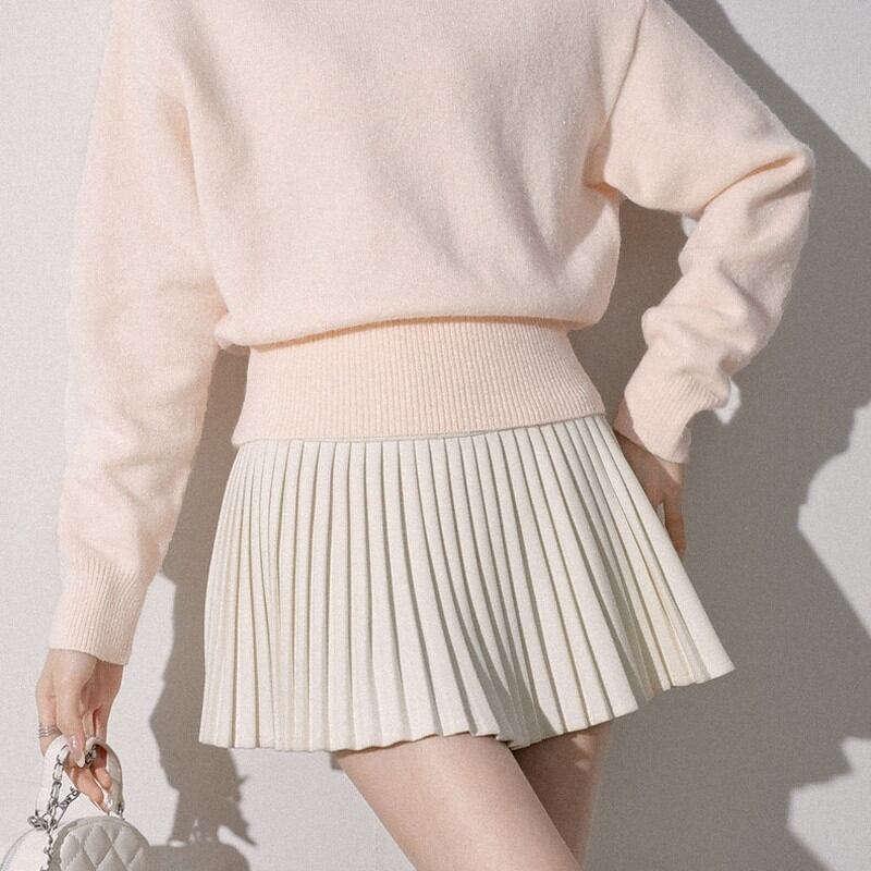細かく入ったプリーツが動きに合わせて表情を出し、コーデ全体をすっきり見せてくれます。