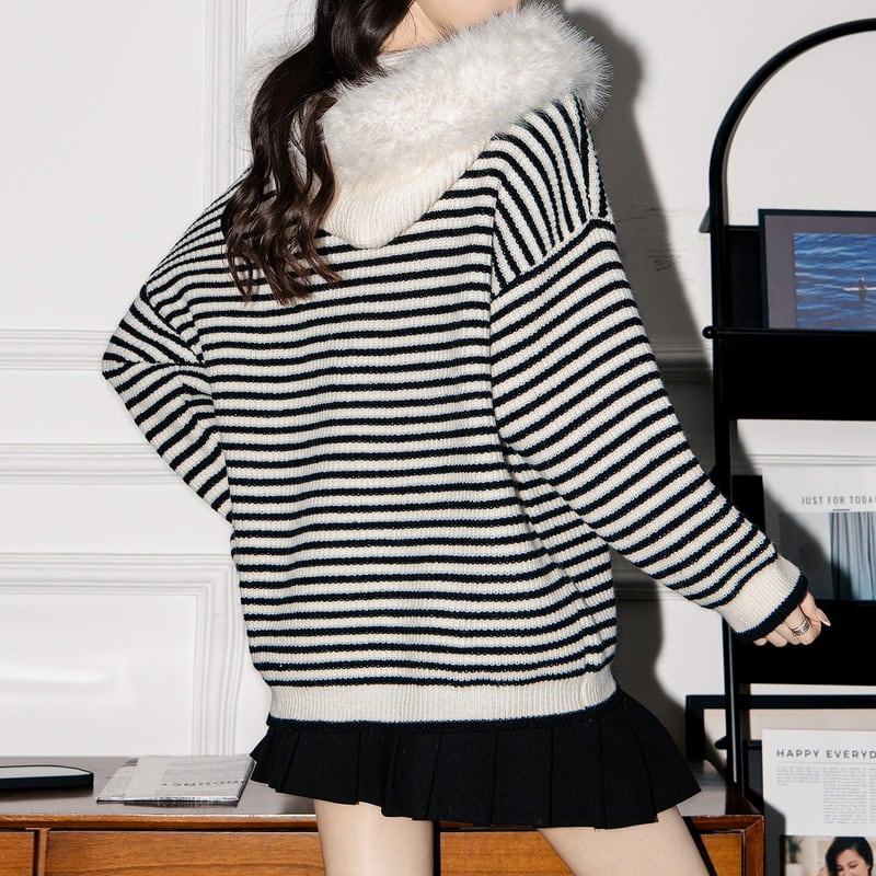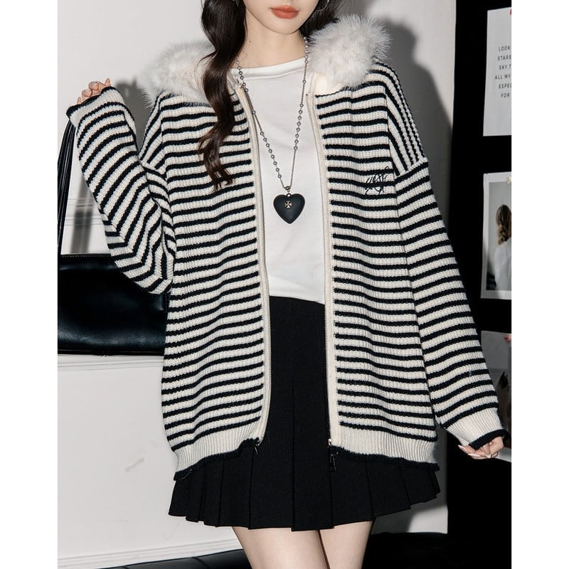 border fur-hooded knit zip cardigan m1472