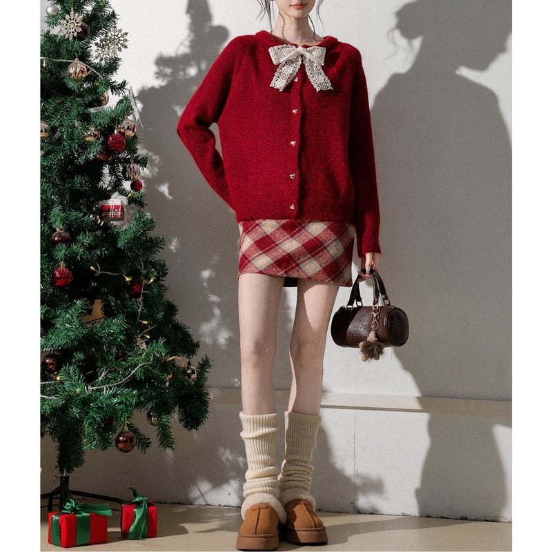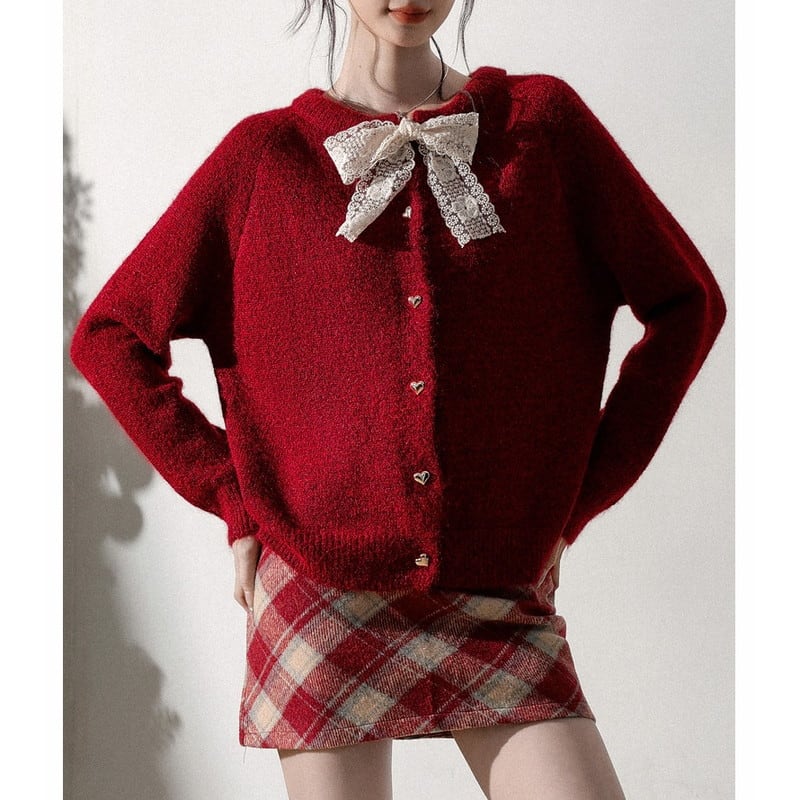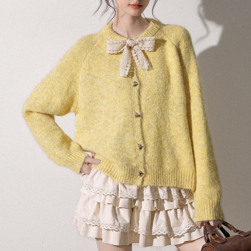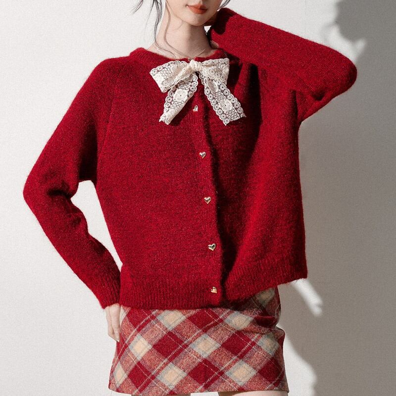 レースリボンが可憐なアクセントになるニットカーディガンです。 ふんわりとした編みの表情がやさしく、羽織るだけで女性らしい印象に。 フロントボタンのデザインが甘さを程よく引き締めるポイント。 スカートにもパンツにも合わせやすく、季節の変わり目に重宝します。 【サイズ】 S:肩幅38cm/スト92cm/袖丈56cm/着丈58.8cm M:肩幅39cm/バスト96cm/袖丈57cm/着丈59.5cm L:肩幅40cm/バスト100cm/袖丈58cm/着丈62cm 【カラー】 ・レッド ・アプリコット ・イエロー ・グレー 【モデル】 身長:163cm 体重:48.5kg B/W:97/72 着用サイズ:M *Mille Msで人気のアイテムはこちら♪ https://www.millems-fashion.shop/categories/2981297 *新商品入荷中!/SALE情報をcheck https://www.millems-fashion.shop/ **ご購入前に必ずお読みください** https://www.millems-fashion.shop/blog/2020/10/28/193337 【お届けについて】 こちらの商品は海外店舗より直接発送となる為、 ご入金から10日〜3週間前後で発送致します。 ◆注意事項 ・タイミングによっては 商品在庫切れにより 注文キャンセルとさせていただく恐れもございますので、予めご了承くださいませ。 ・こちらは輸入品となります。日本製とは検品基準が異なる為、 新品未使用品でもごくわずかな汚れや ほつれがある場合もございます。 ・仕入れ工場を変えることがあるため、記載サイズと若干異なる場合がございます。 ・商品の色味は、お手持ちのスマートフォンの画面によって実物と若干異なる場合がございます。 ・イメージ違いやサイズ交換等、お客さまご都合による交換、返品は対応出来かねます。 【お支払方法】 ・クレジットカード決済 (VISA/Master/JCB/AMERICAN EXPRESS) ・キャリア決済 (docomo/au/SoftBank/Y!mobile/UQmobile) ・後払い決済 ーーーーーーーーーーーーーーーーーーーー *Mille Ms Instagram https://www.instagram.com/millems_official
