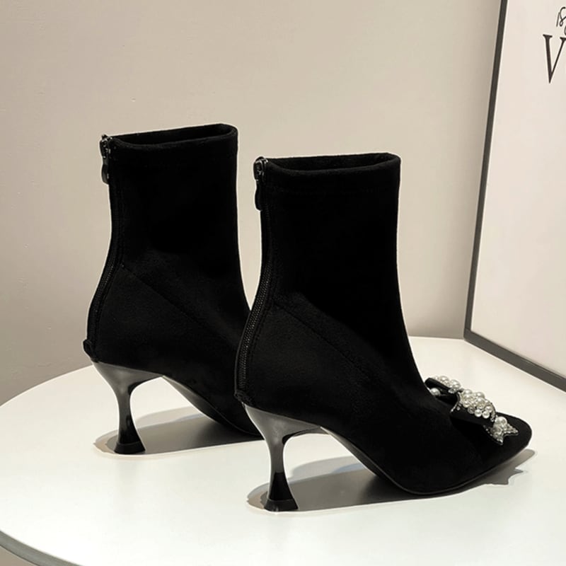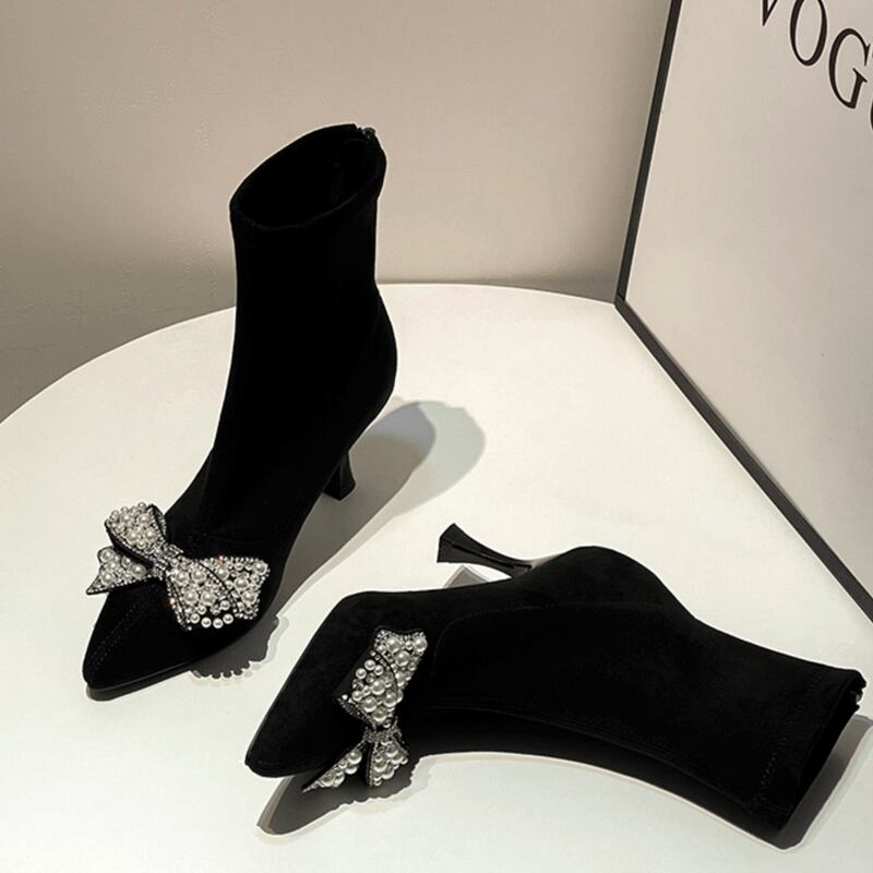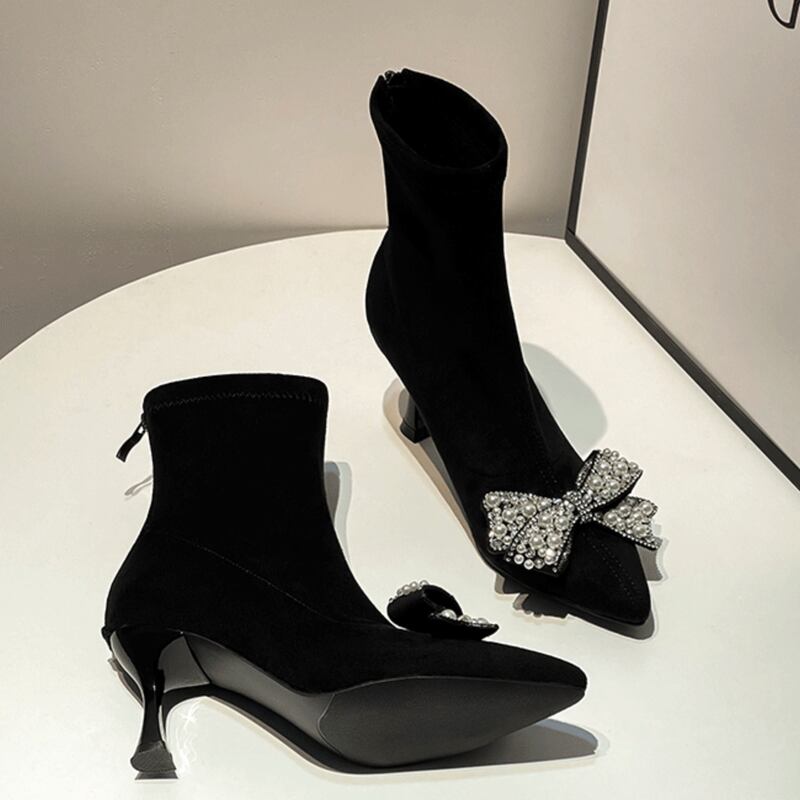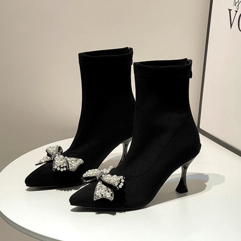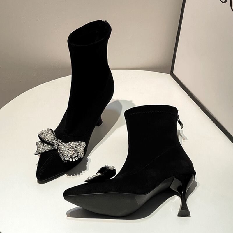 特別な日のお出かけにぴったりのショートブーツ。足元をすっきりと見せるポインテッドトゥと、安定感のあるミドルヒールで、快適な履き心地とスタイルアップを両立します。存在感のあるリボンが、足元に華やかさを添え、パーティーやイベントなど、様々なシーンで活躍します。 【サイズ】 35(22-22.5cm) 36(22.5-23cm) 37(23-23.5cm) 38(23.5-24cm) 39(24-24.5cm) 40(24.5-25cm) ヒール/7.5cm 【カラー】 ・ONE color *Mille Msで人気のアイテムはこちら♪ https://www.millems-fashion.shop/categories/2981297 *新商品入荷中!/SALE情報をcheck https://www.millems-fashion.shop/ **ご購入前に必ずお読みください** https://www.millems-fashion.shop/blog/2020/10/28/193337 【お届けについて】 こちらの商品は海外店舗より直接発送となる為、 ご入金から10日〜3週間前後で発送致します。 ◆注意事項 ・タイミングによっては 商品在庫切れにより 注文キャンセルとさせていただく恐れもございますので、予めご了承くださいませ。 ・こちらは輸入品となります。日本製とは検品基準が異なる為、 新品未使用品でもごくわずかな汚れや ほつれがある場合もございます。 ・仕入れ工場を変えることがあるため、記載サイズと若干異なる場合がございます。 ・商品の色味は、お手持ちのスマートフォンの画面によって実物と若干異なる場合がございます。 ・イメージ違いやサイズ交換等、お客さまご都合による交換、返品は対応出来かねます。 【お支払方法】 ・クレジットカード決済 (VISA/Master/JCB/AMERICAN EXPRESS) ・キャリア決済 (docomo/au/SoftBank/Y!mobile/UQmobile) ・後払い決済 ーーーーーーーーーーーーーーーーーーーー *Mille Ms Instagram https://www.instagram.com/millems_official
