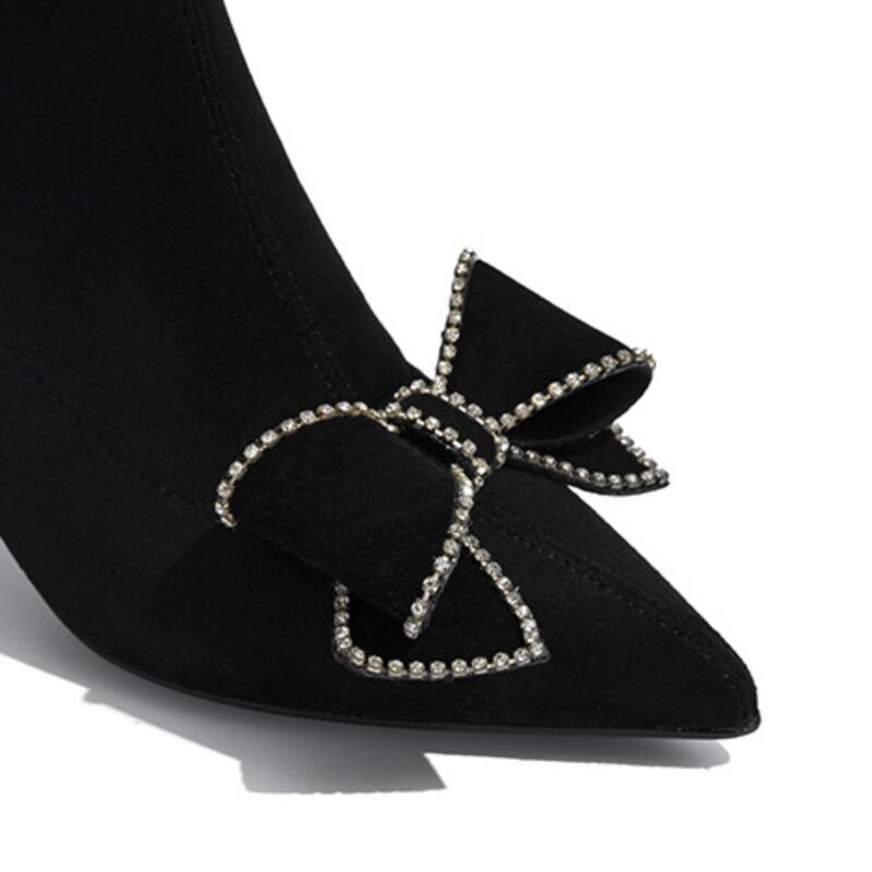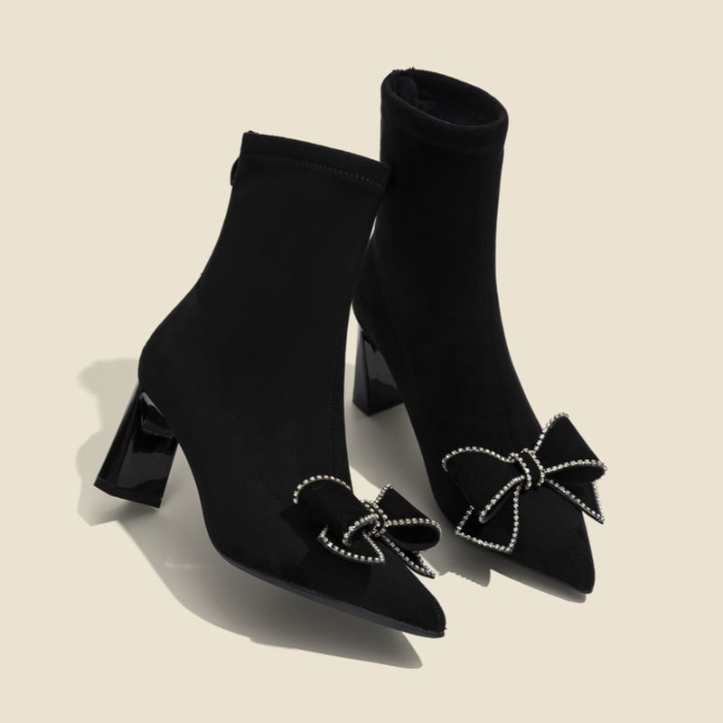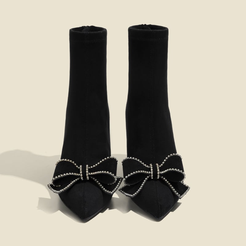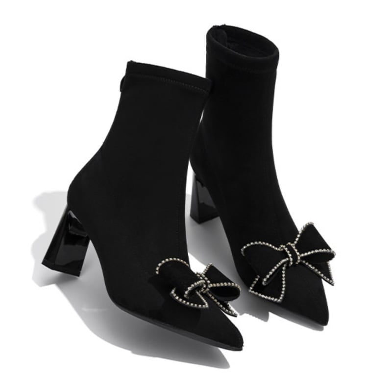 足元に華やぎを添えるミドル丈のソックスブーツ。ポインテッドトゥがシャープな印象を与えつつ、リボンモチーフがフェミニンなアクセントを加えます。普段使いはもちろん、ちょっとしたお出かけやパーティーシーンにもおすすめです。 【サイズ】 35(22-22.5cm) 36(22.5-23cm) 37(23-23.5cm) 38(23.5-24cm) 39(24-24.5cm) 40(24.5-25cm) ヒール/7cm 【カラー】 ・ONE color *Mille Msで人気のアイテムはこちら♪ https://www.millems-fashion.shop/categories/2981297 *新商品入荷中!/SALE情報をcheck https://www.millems-fashion.shop/ **ご購入前に必ずお読みください** https://www.millems-fashion.shop/blog/2020/10/28/193337 【お届けについて】 こちらの商品は海外店舗より直接発送となる為、 ご入金から10日〜3週間前後で発送致します。 ◆注意事項 ・タイミングによっては 商品在庫切れにより 注文キャンセルとさせていただく恐れもございますので、予めご了承くださいませ。 ・こちらは輸入品となります。日本製とは検品基準が異なる為、 新品未使用品でもごくわずかな汚れや ほつれがある場合もございます。 ・仕入れ工場を変えることがあるため、記載サイズと若干異なる場合がございます。 ・商品の色味は、お手持ちのスマートフォンの画面によって実物と若干異なる場合がございます。 ・イメージ違いやサイズ交換等、お客さまご都合による交換、返品は対応出来かねます。 【お支払方法】 ・クレジットカード決済 (VISA/Master/JCB/AMERICAN EXPRESS) ・キャリア決済 (docomo/au/SoftBank/Y!mobile/UQmobile) ・後払い決済 ーーーーーーーーーーーーーーーーーーーー *Mille Ms Instagram https://www.instagram.com/millems_official