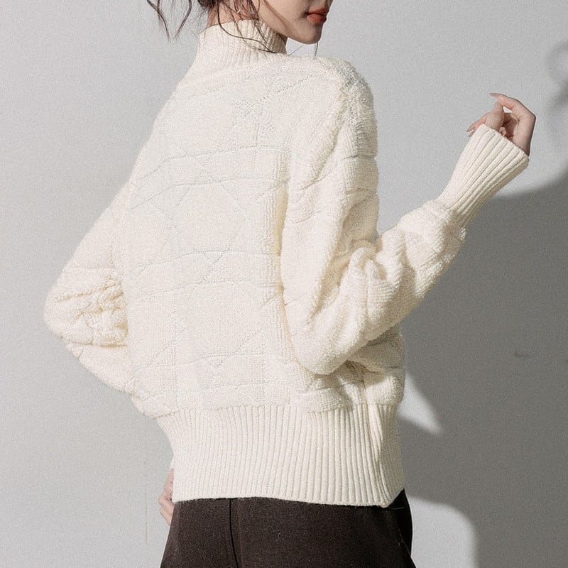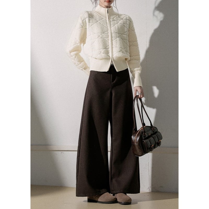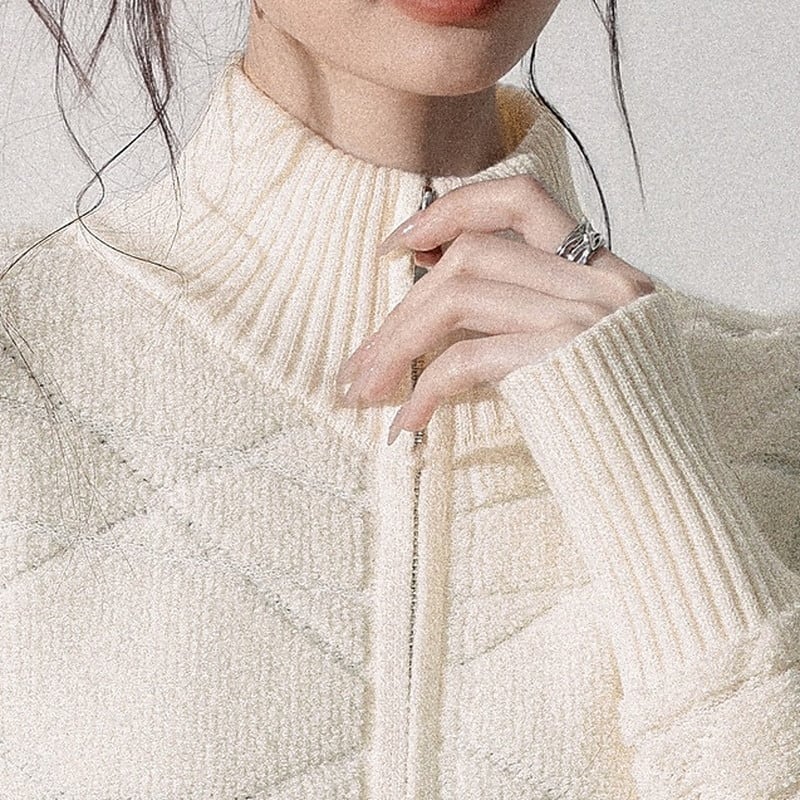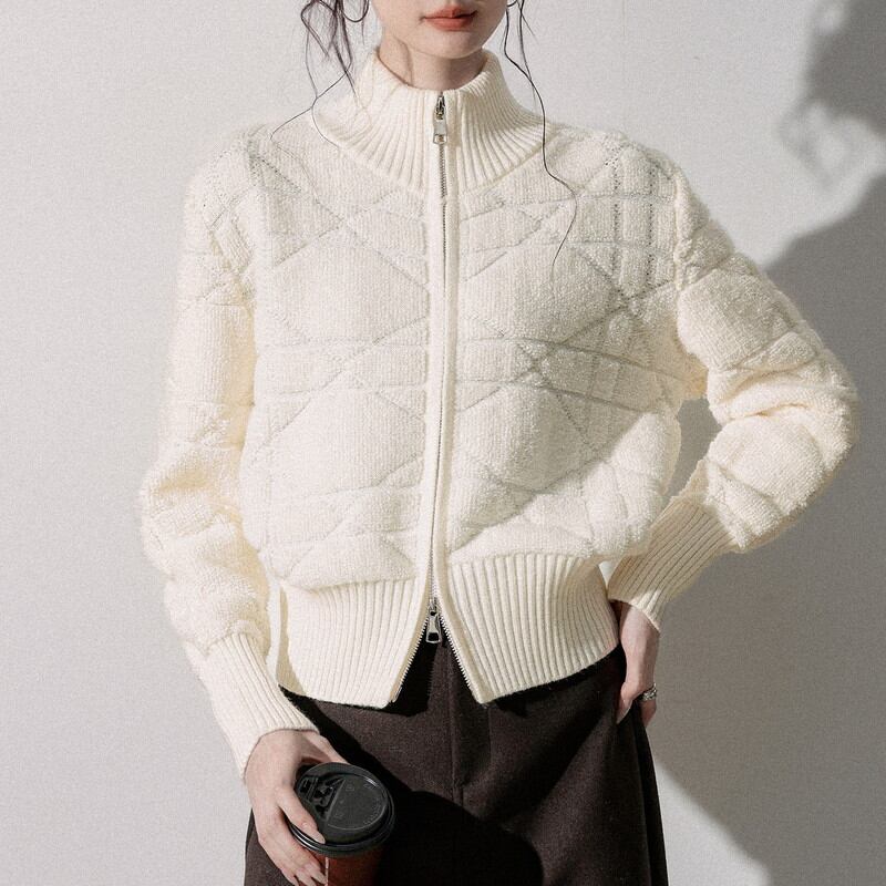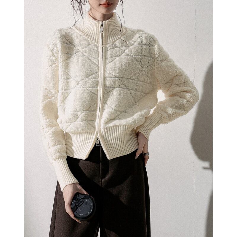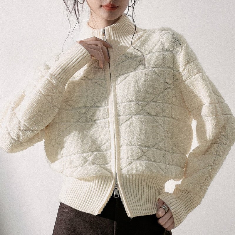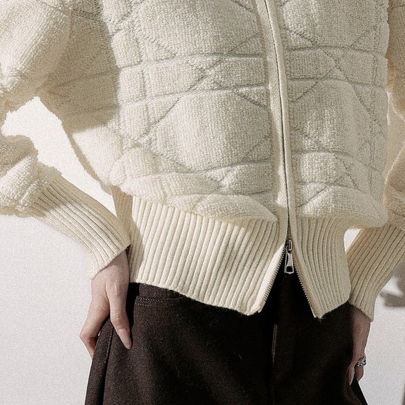 立体感のある編み柄が印象的なジップニットブルゾンです。