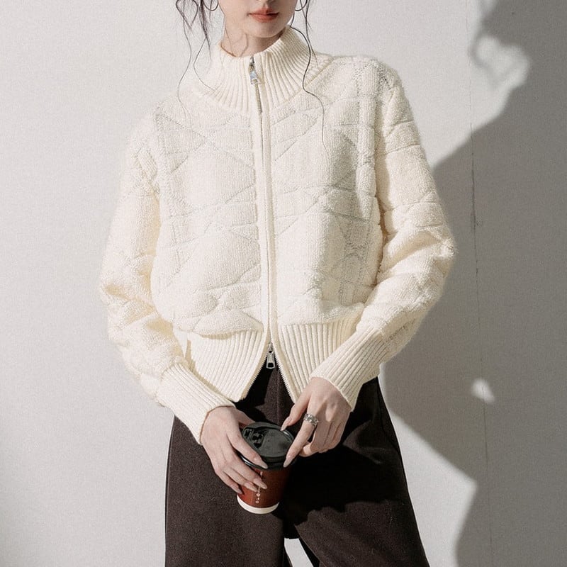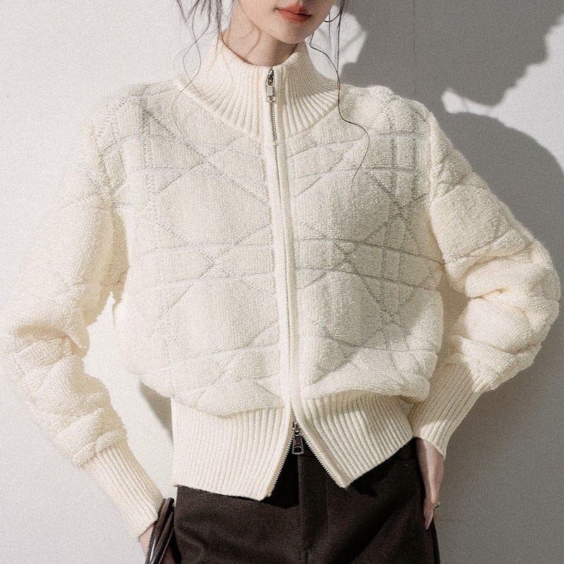textured double-zip knit blouson jacket m1544