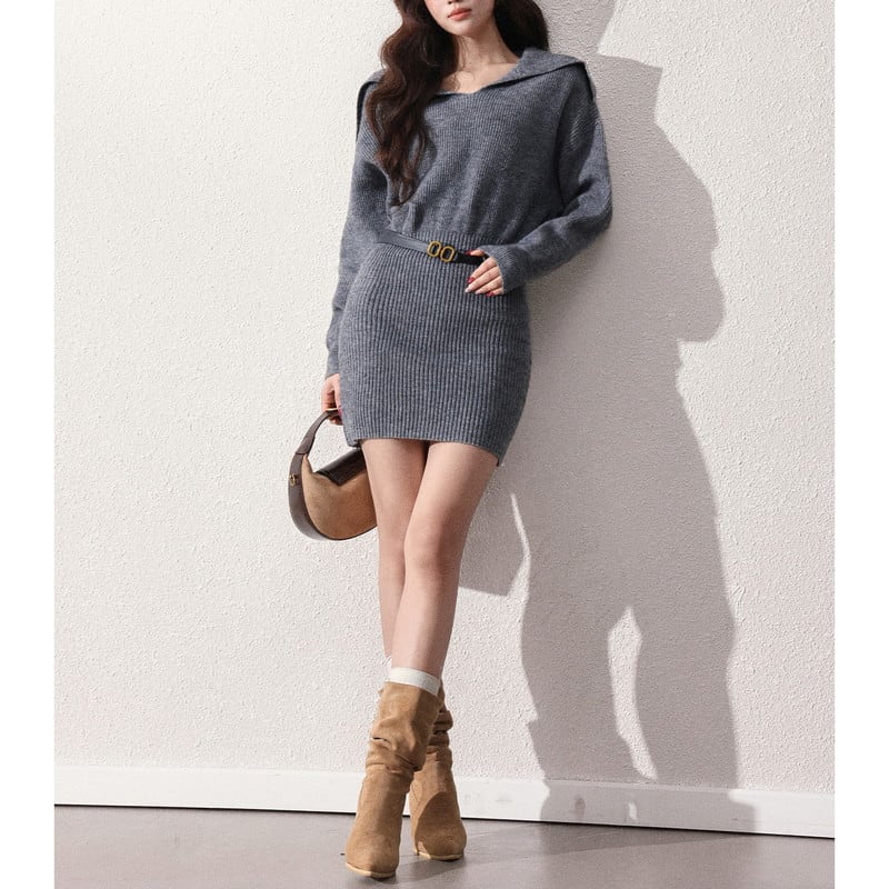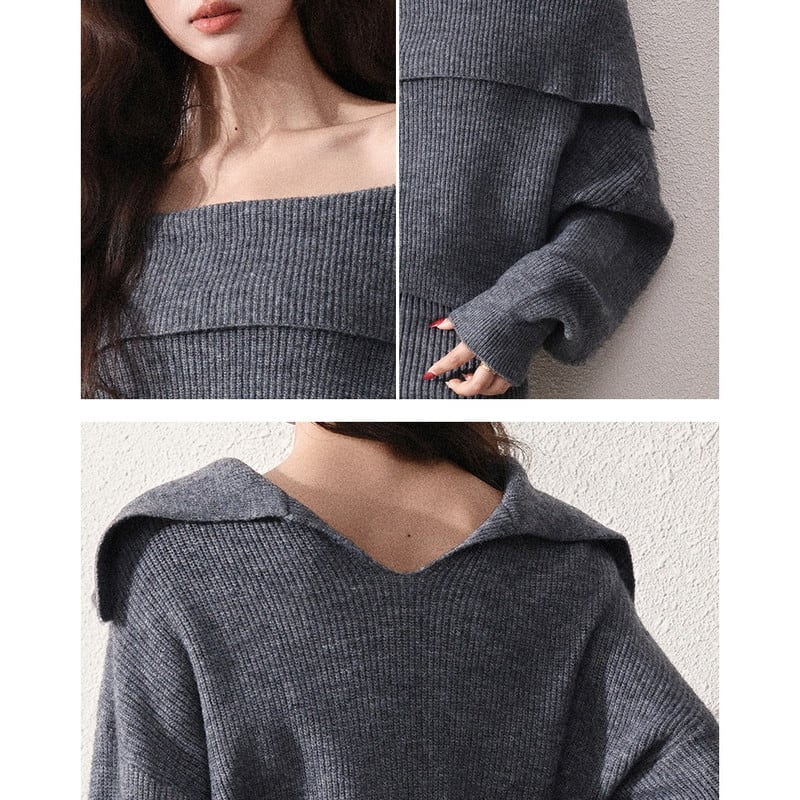 off-shoulder loose rib-knit one-piece m1549