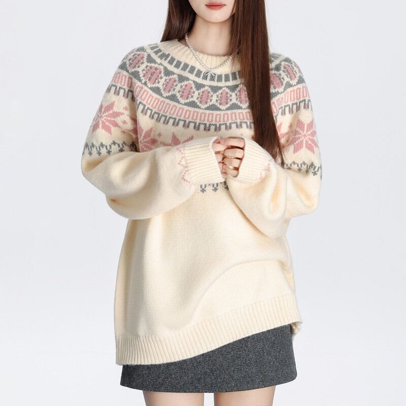 ノルディック柄がやさしく映える、季節感のあるニットプルオーバーです。