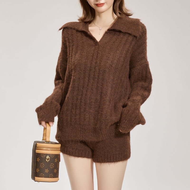 open collar long sleeve knit set-up m1226