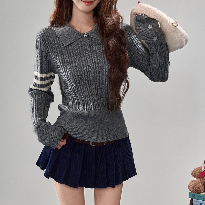 long sleeve shirt collar cable knit polo shirt m1589