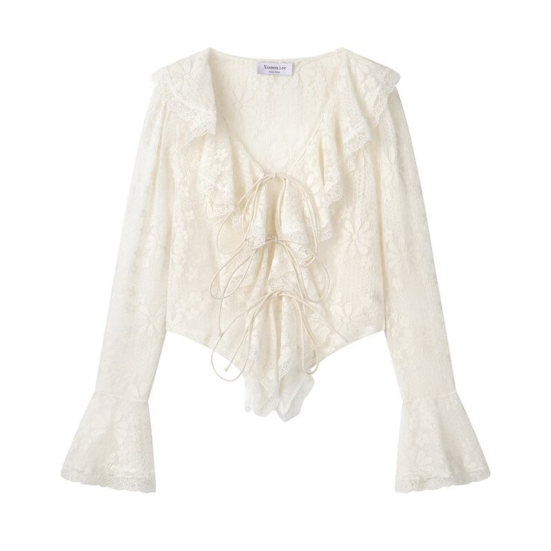 frill lace open collar long sleeve blouse m1607