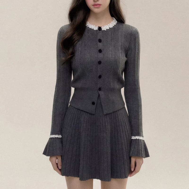 ミニ丈でスタイルアップ効果も期待できるニットセットアップ。オフィスでのきちんとスタイルから、休日のカジュアルスタイルまで、幅広いシーンで活躍します。コンパクトなシルエットなので、アウターとのレイヤードもおすすめです。