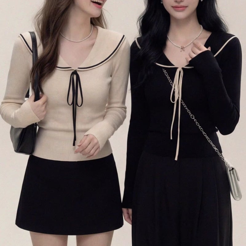 color trim ribbon attached long sleeve knit m1629