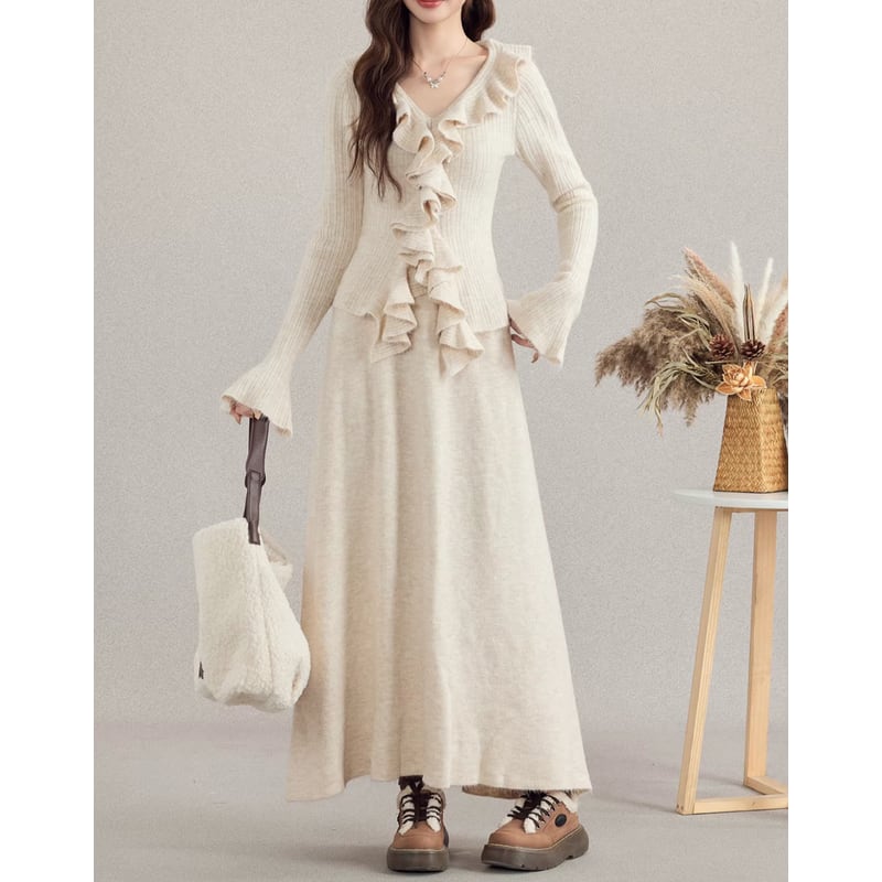 frill long sleeve maxi knit set-up m1632