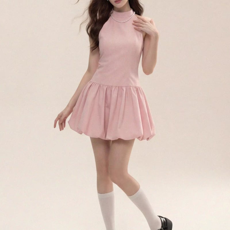 sleeveless short gathered mini one-piece m1669