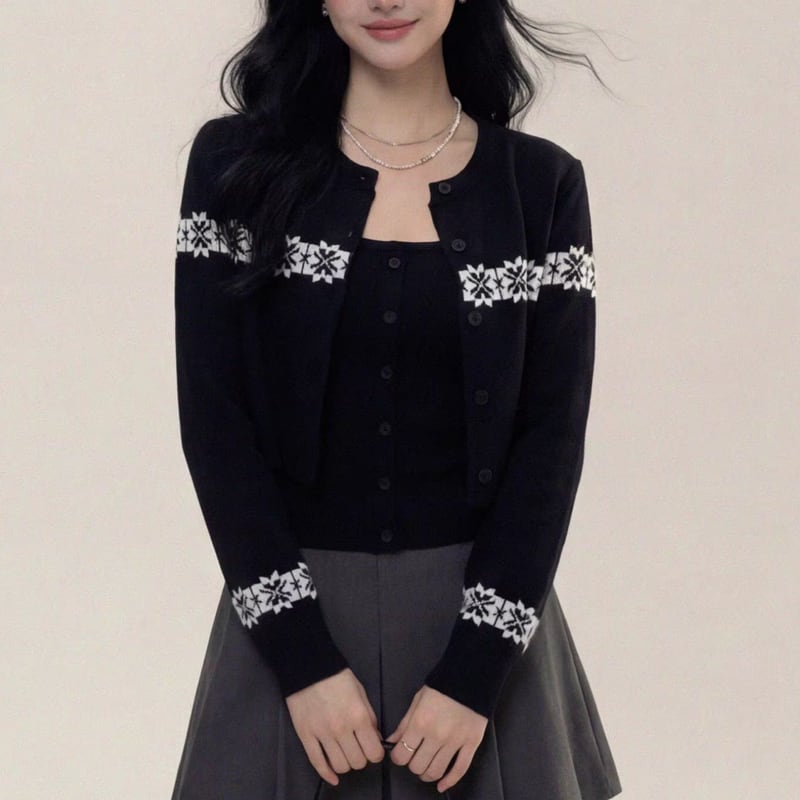 long sleeve button front cropped knit cardigan set m1685