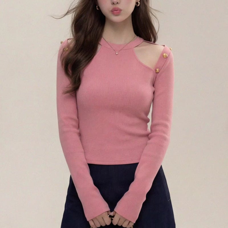 shoulder cut long sleeve ribbed t-shirt m1687