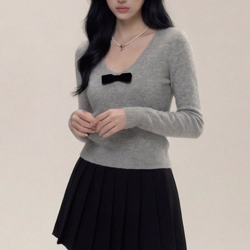ribbon-attached long sleeve v-neck knit m1689