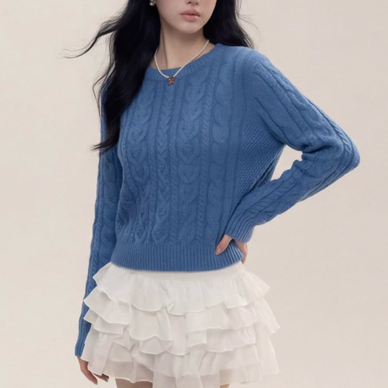 cable knit long sleeve cropped sweater m1729
