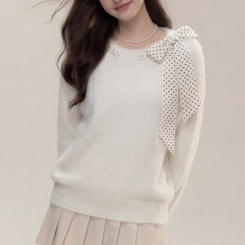 ribbon long sleeve drop shoulder knit m1732