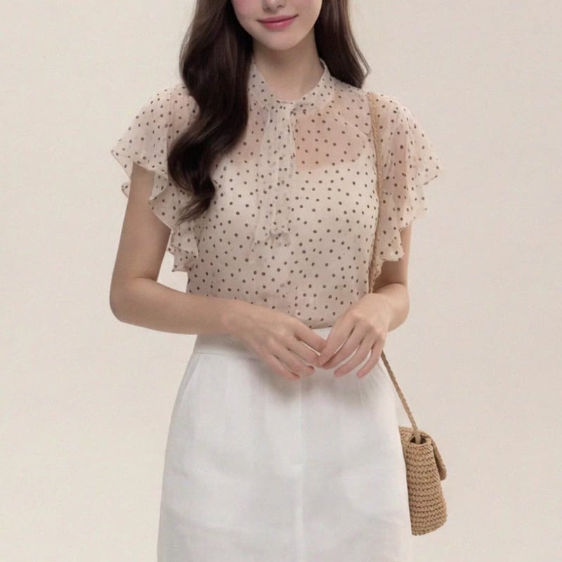 dot pattern frill sleeve mini blouse m1753