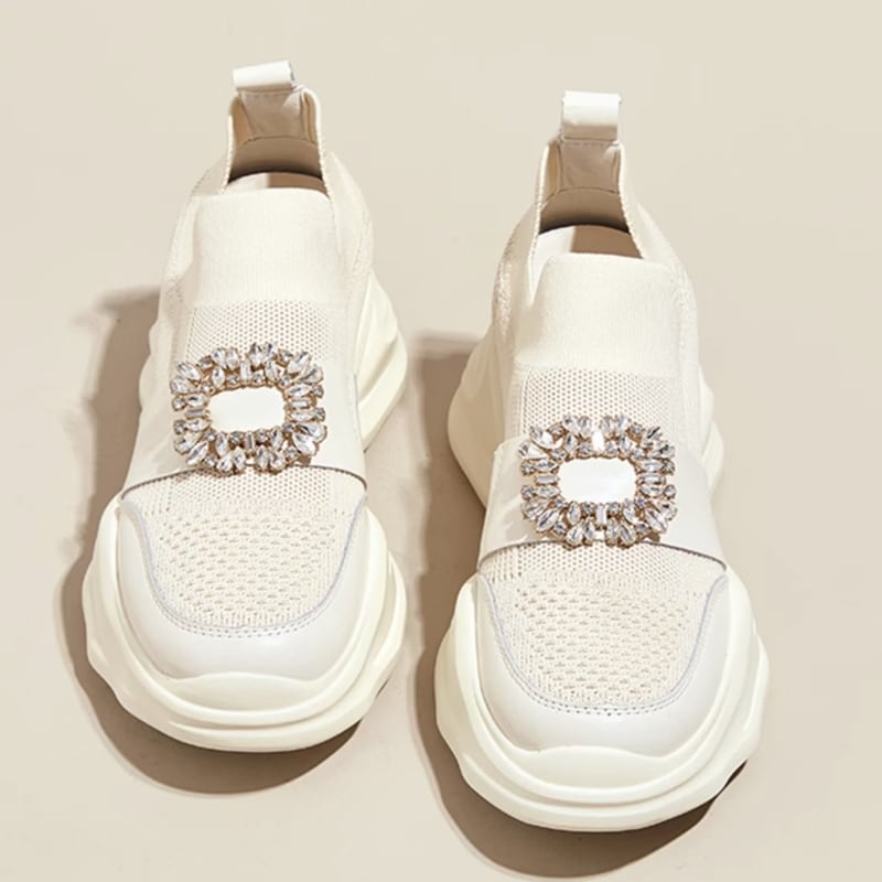 ビジューが散りばめられたトップラインが高級感を引き立て、足元を華やかに演出します。