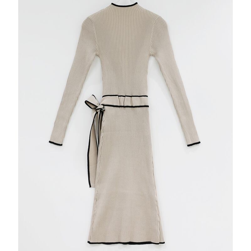 大人っぽい印象を与えるコントラストカラーラインデザインが魅力のニットワンピースです。