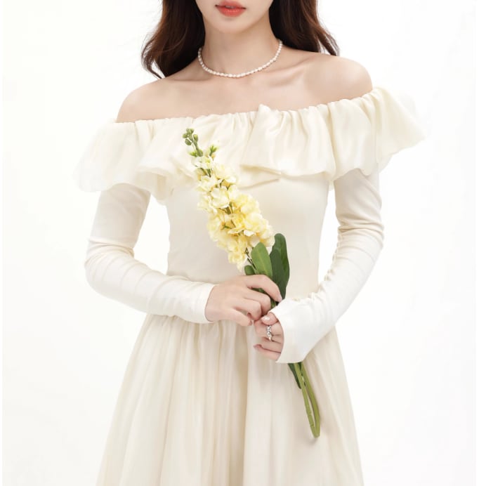 フリルとシフォンがエレガントで女性らしいワンピース。ショルダー部分のフリルが甘さと華やかさを演出。軽やかなシフォン素材が上品なドレープを生み出し、優雅な動きを楽しめます。フォーマルなシーンにもぴったりの1枚です。 【サイズ】 S:肩幅39cm/バスト52cm/ウエスト42cm/袖丈59cm/着丈112cm M:肩幅40cm/バスト56cm/ウエスト46cm/袖丈60cm/着丈113cm L:肩幅41cm/バスト60cm/ウエスト50cm/袖丈61cm/着丈114cm 【カラー】 ・ブラック ・アプリコット 【モデル】 身長:166cm 体重:49kg B/W:86/62 着用サイズ:S *Mille Msで人気のアイテムはこちら♪ https://www.millems-fashion.shop/categories/2981297 *新商品入荷中!/SALE情報をcheck https://www.millems-fashion.shop/ **ご購入前に必ずお読みください** https://www.millems-fashion.shop/blog/2020/10/28/193337 【お届けについて】 こちらの商品は海外店舗より直接発送となる為、 ご入金から10日〜3週間前後で発送致します。 ◆注意事項 ・タイミングによっては 商品在庫切れにより 注文キャンセルとさせていただく恐れもございますので、予めご了承くださいませ。 ・こちらは輸入品となります。日本製とは検品基準が異なる為、 新品未使用品でもごくわずかな汚れや ほつれがある場合もございます。 ・仕入れ工場を変えることがあるため、記載サイズと若干異なる場合がございます。 ・商品の色味は、お手持ちのスマートフォンの画面によって実物と若干異なる場合がございます。 ・イメージ違いやサイズ交換等、お客さまご都合による交換、返品は対応出来かねます。 【お支払方法】 ・クレジットカード決済 (VISA/Master/JCB/AMERICAN EXPRESS) ・キャリア決済 (docomo/au/SoftBank/Y!mobile/UQmobile) ・後払い決済 ーーーーーーーーーーーーーーーーーーーー *Mille Ms Instagram https://www.instagram.com/millems_official